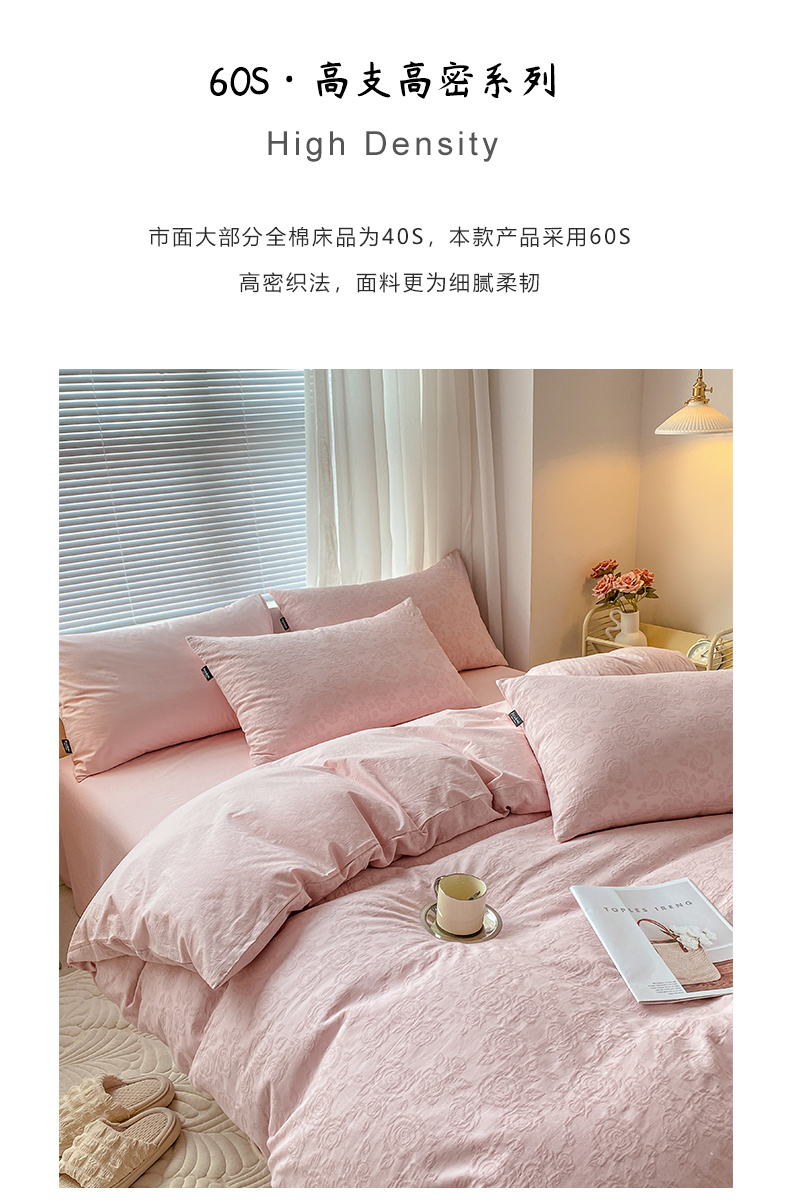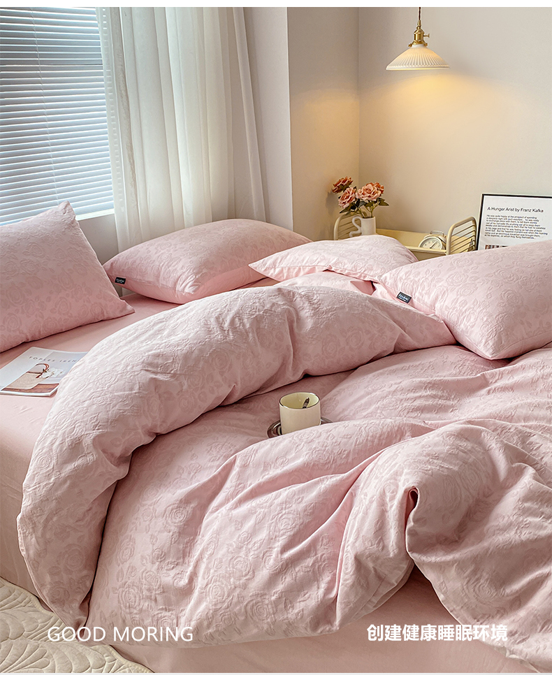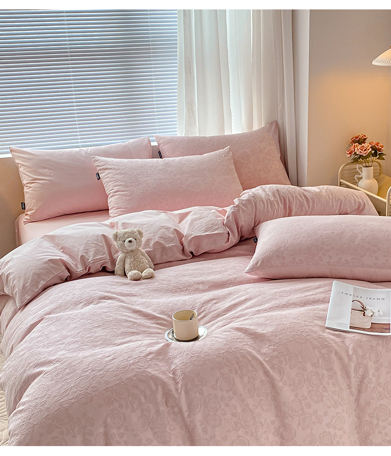 当前位置: 91家纺网 > 商品网购 > 床品套件 > 四件套 > 水洗棉四件套 > 宜代光年 2025新款三层纱60s水洗棉提花系列四件套 玫瑰粉