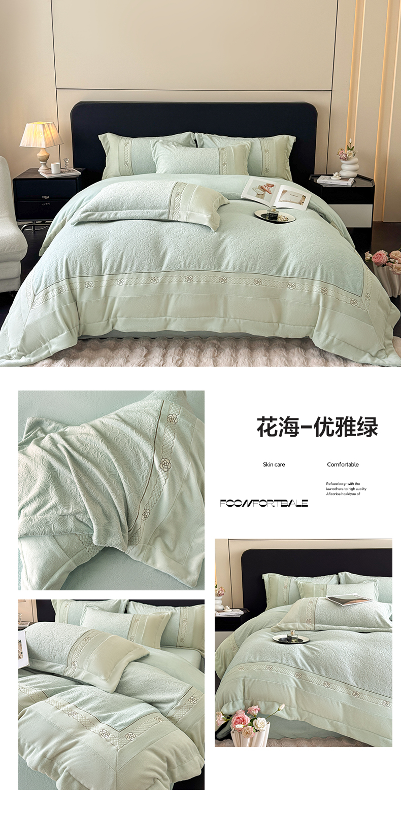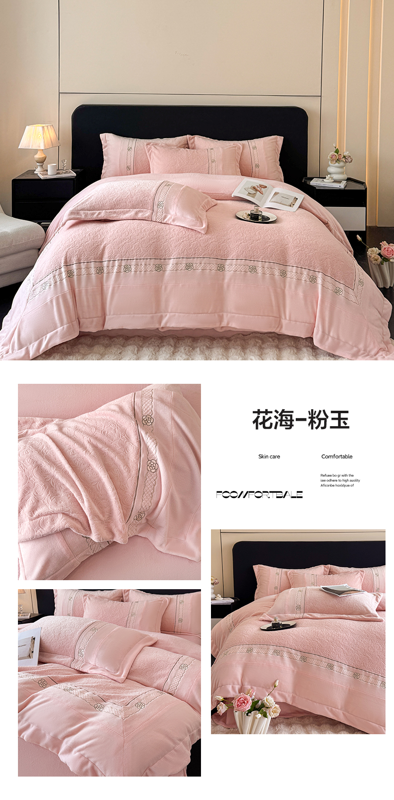 当前位置: 91家纺网 > 商品网购 > 床品套件 > 四件套 > 牛奶绒四件套 > (总)博纳家纺 2025新款230克雕花绒法式花边刺绣加厚牛奶绒四件套-花海 控价劵后248(严格按控价来)