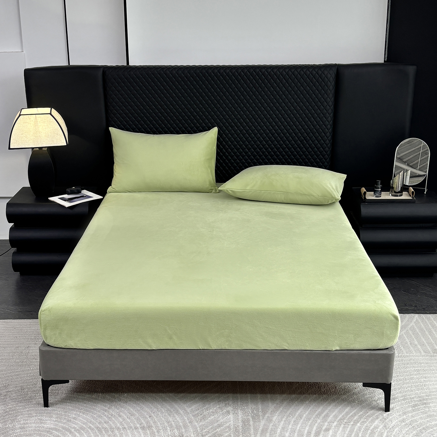 (总)馨乐家纺 2025新款简约时尚纯色水晶绒床笠,深灰,浅蓝,深蓝,豆沙,抹茶