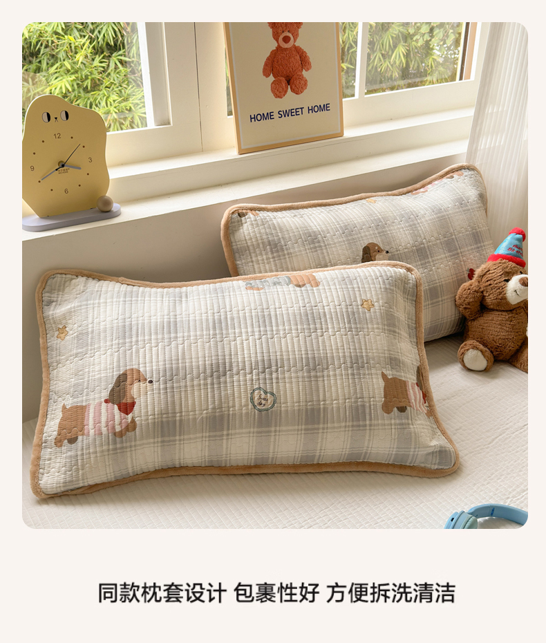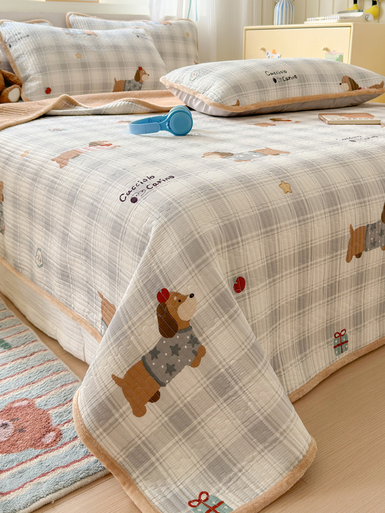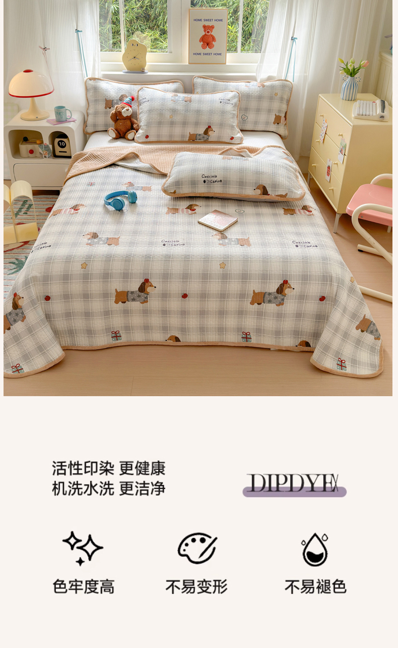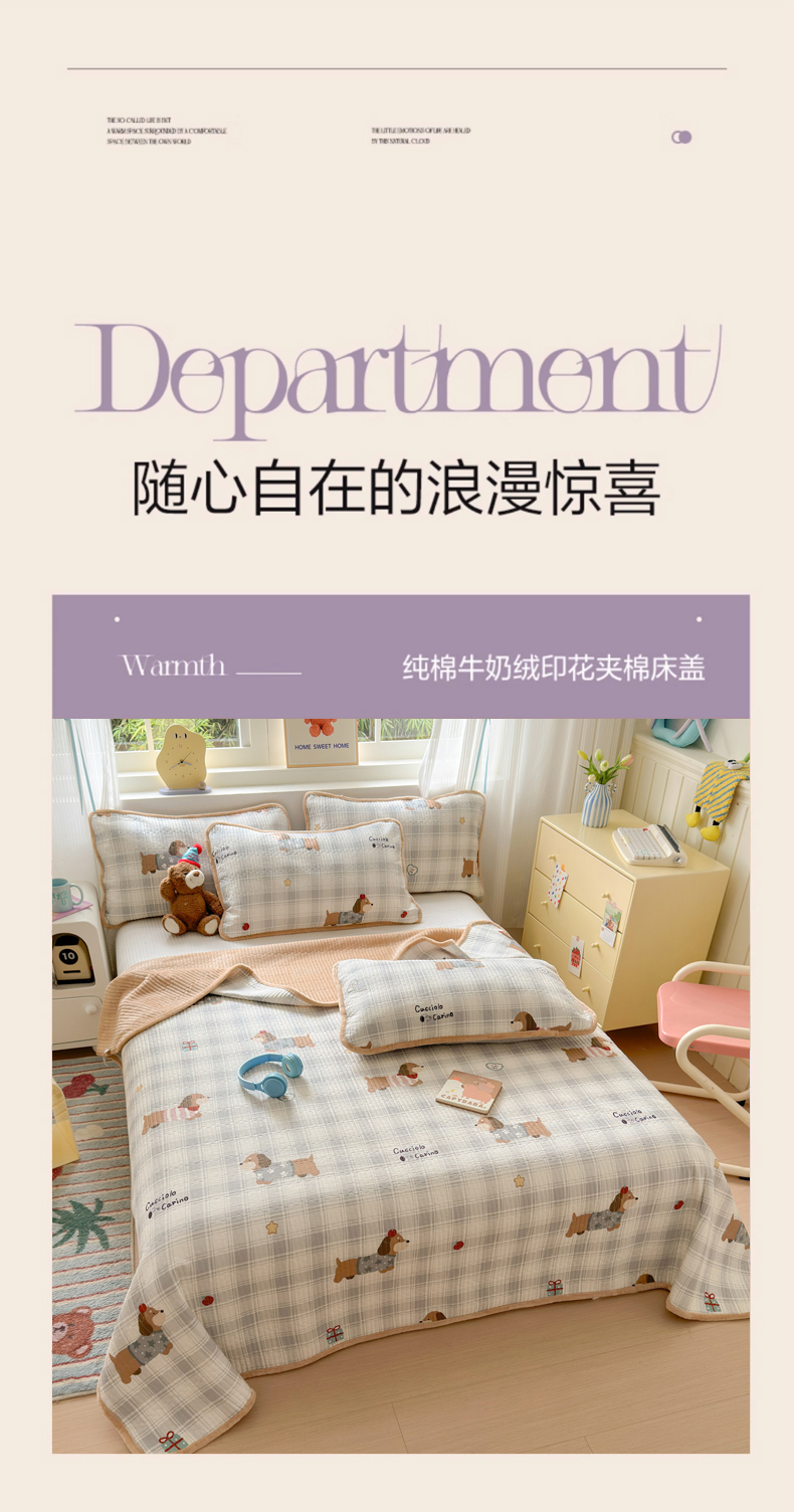 • 91家纺网 家纺一手货源 找家纺 Sweet dreams甜梦 2025新款牛奶绒全棉床盖三件套 毛衣小狗