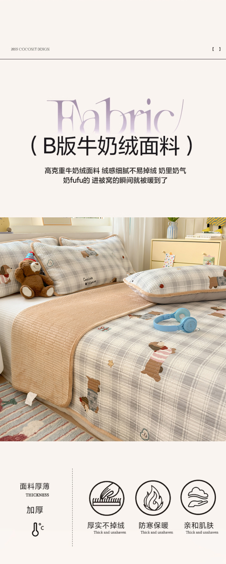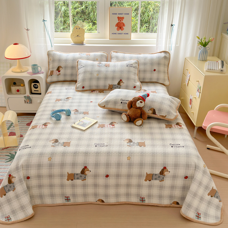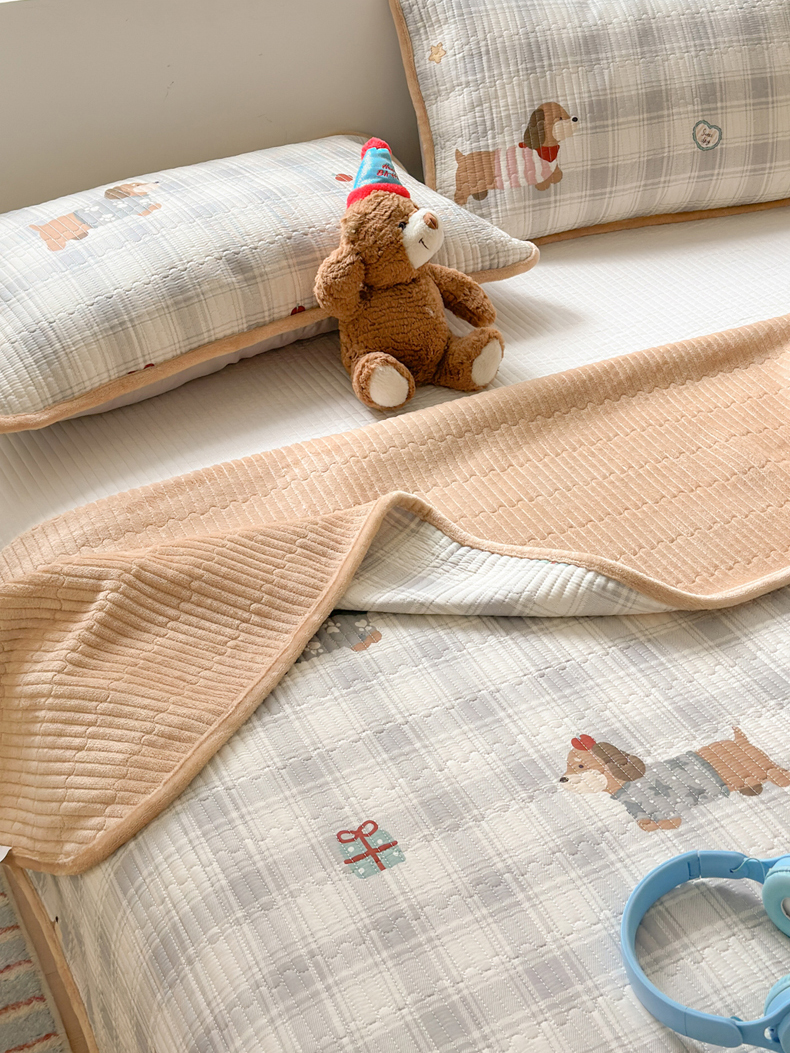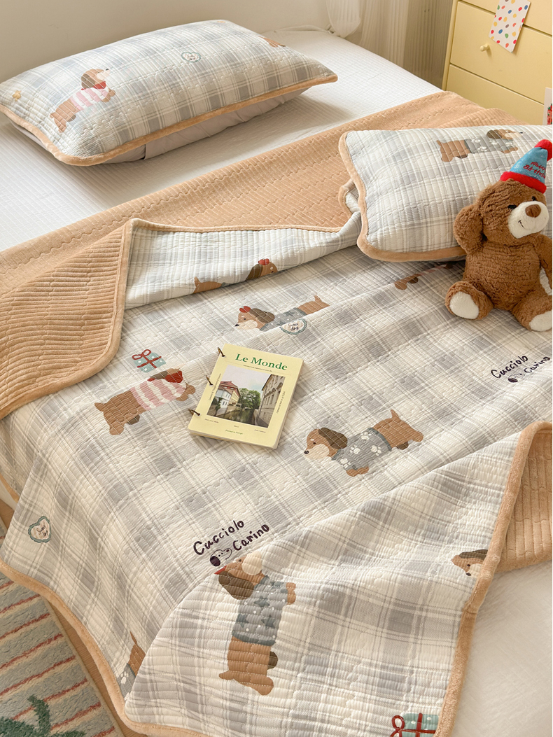 • 91家纺网 家纺一手货源 找家纺 Sweet dreams甜梦 2025新款牛奶绒全棉床盖三件套 毛衣小狗