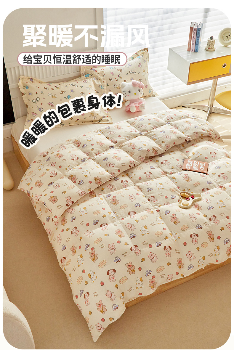 (总)暖羽屋羽绒馆 2025新款儿童纯棉鹅绒丝被芯60s卡通学生婴幼儿园1.2米羽绒被子1.5米宿舍羽绒冬被,饼干小熊,青青小兔,时尚八宝
