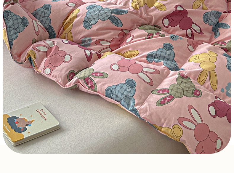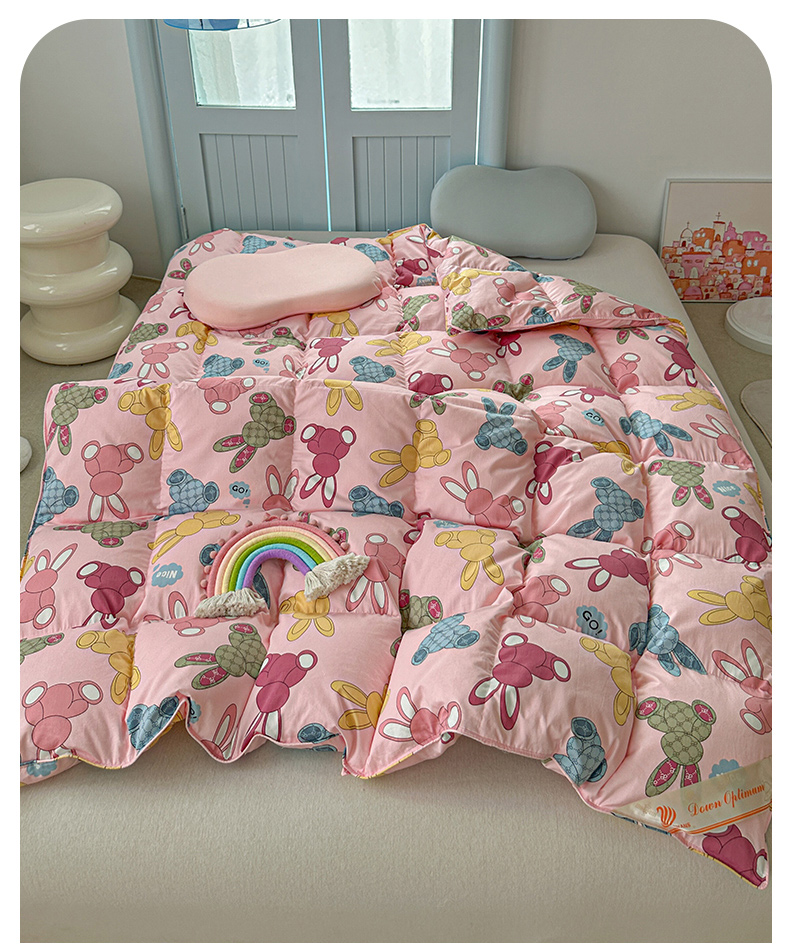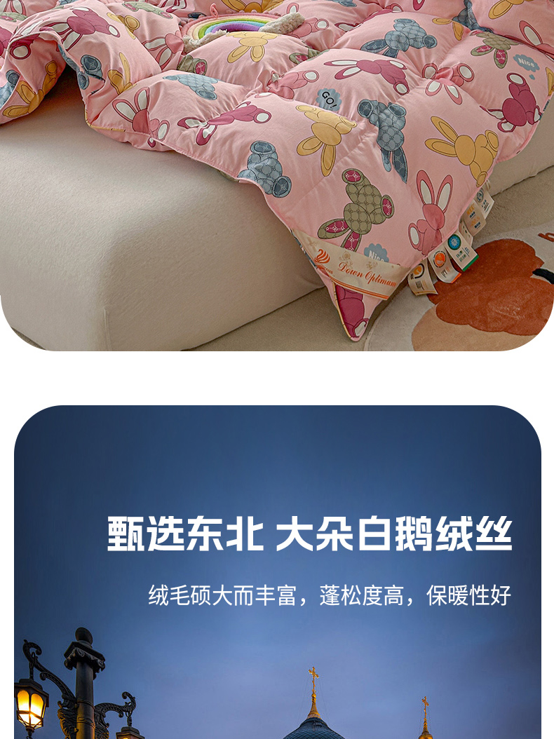 • 91家纺网 家纺一手货源 找家纺 (总)暖羽屋羽绒馆 2025新款抗菌防螨绒子含量95白鸭绒被芯1.5米儿童羽绒被子婴幼儿学生鸭绒被春秋被,成绩兔出,鸿运兔,奶糖大白兔,汽车恐龙
