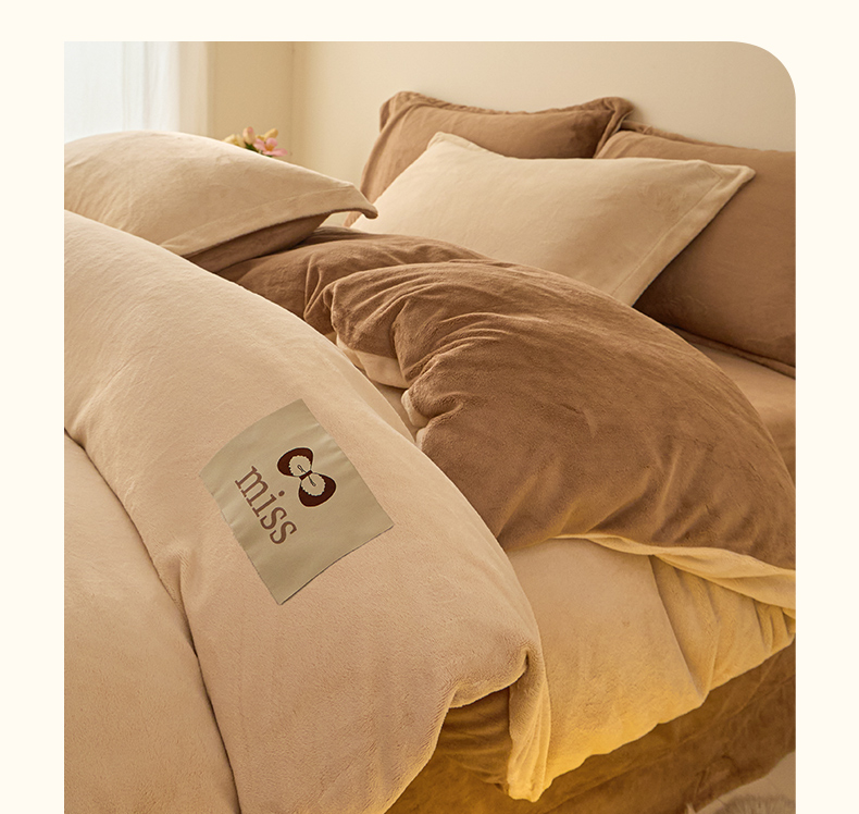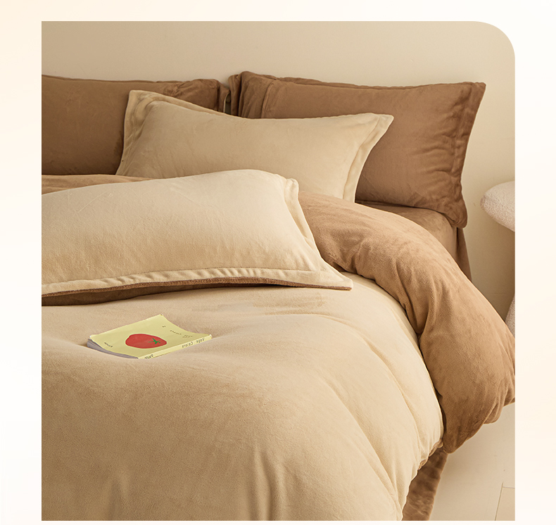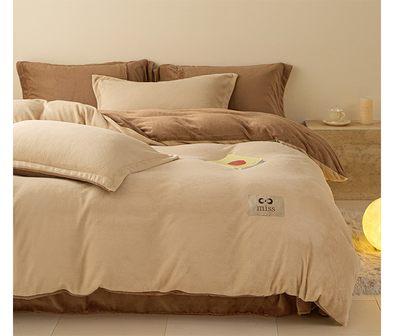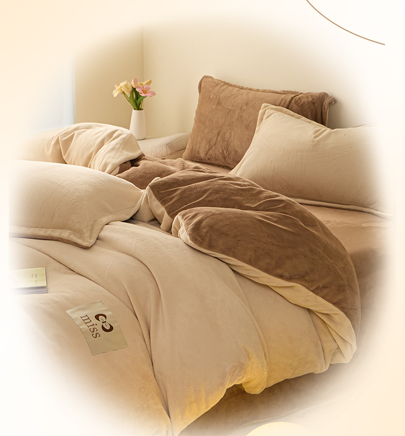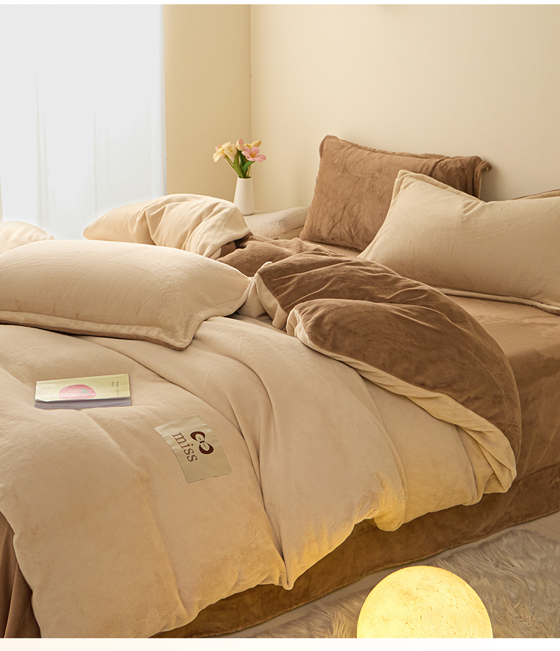 鑫琪莱家纺 2025新款高克重牛奶绒双拼四件套 杏仁奶咖