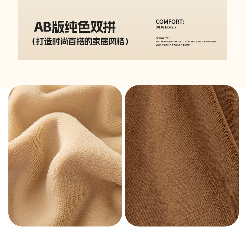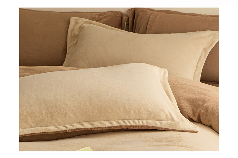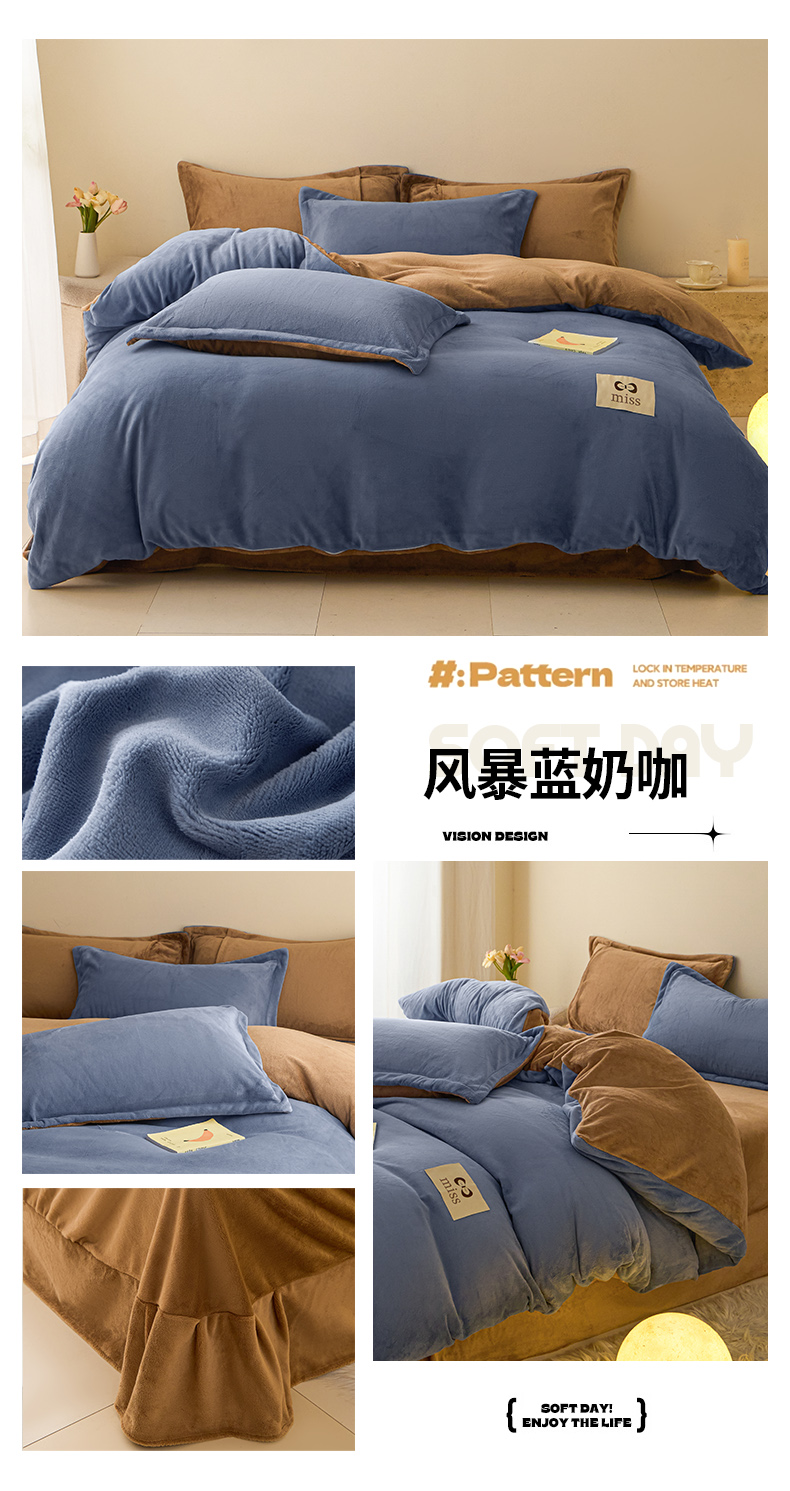 商品名称:鑫琪莱家纺 2025新款高克重牛奶绒双拼四件套 杏仁奶咖