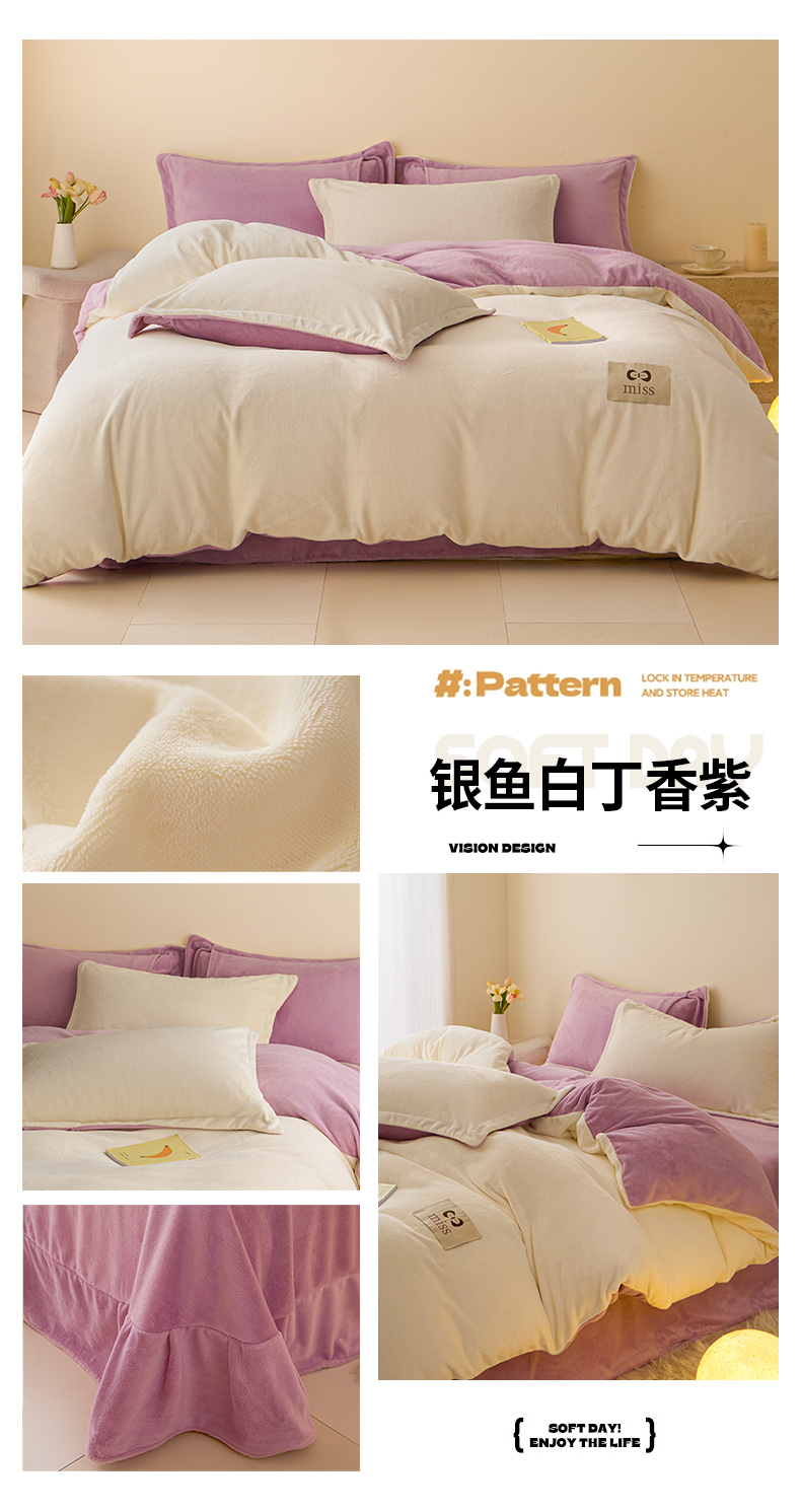 (总)鑫琪莱家纺 2025新款高克重牛奶绒双拼四件套,浅豆沙暮色灰,风暴蓝奶咖,银鱼白柠檬黄,银鱼白嫩荷绿,银鱼白丁香紫,柠檬黄风暴蓝,杏仁奶咖,风暴蓝暮色灰