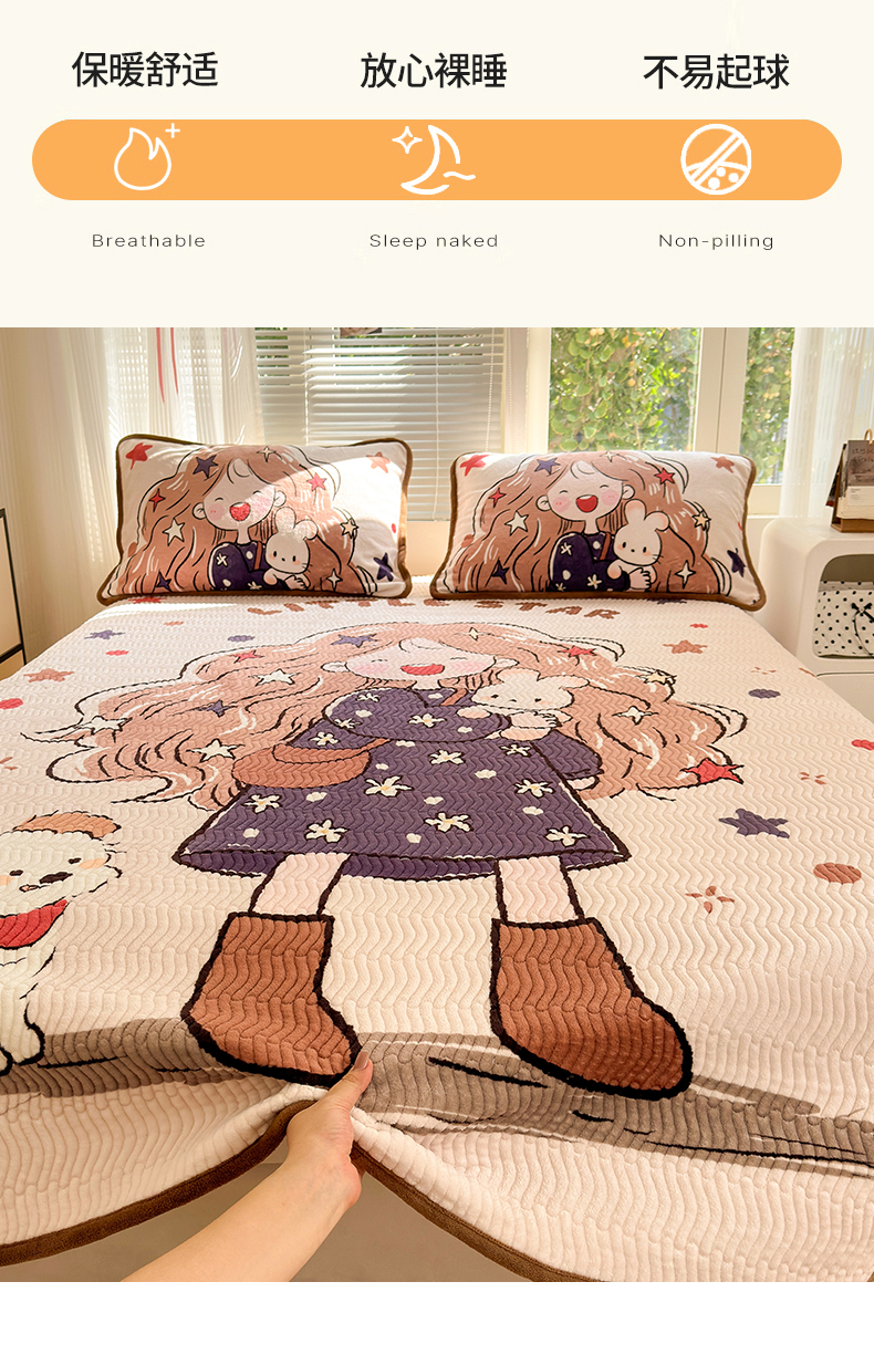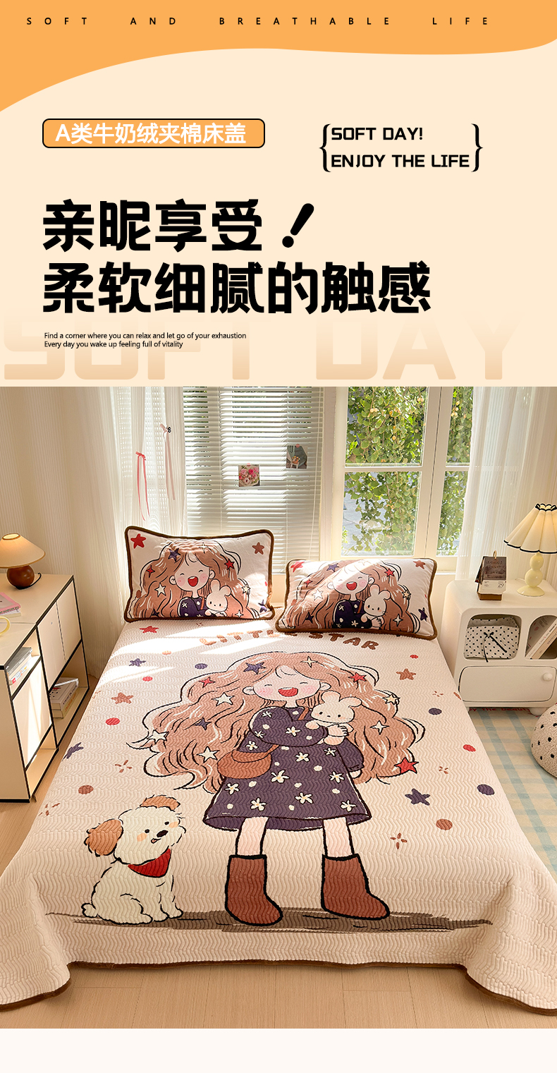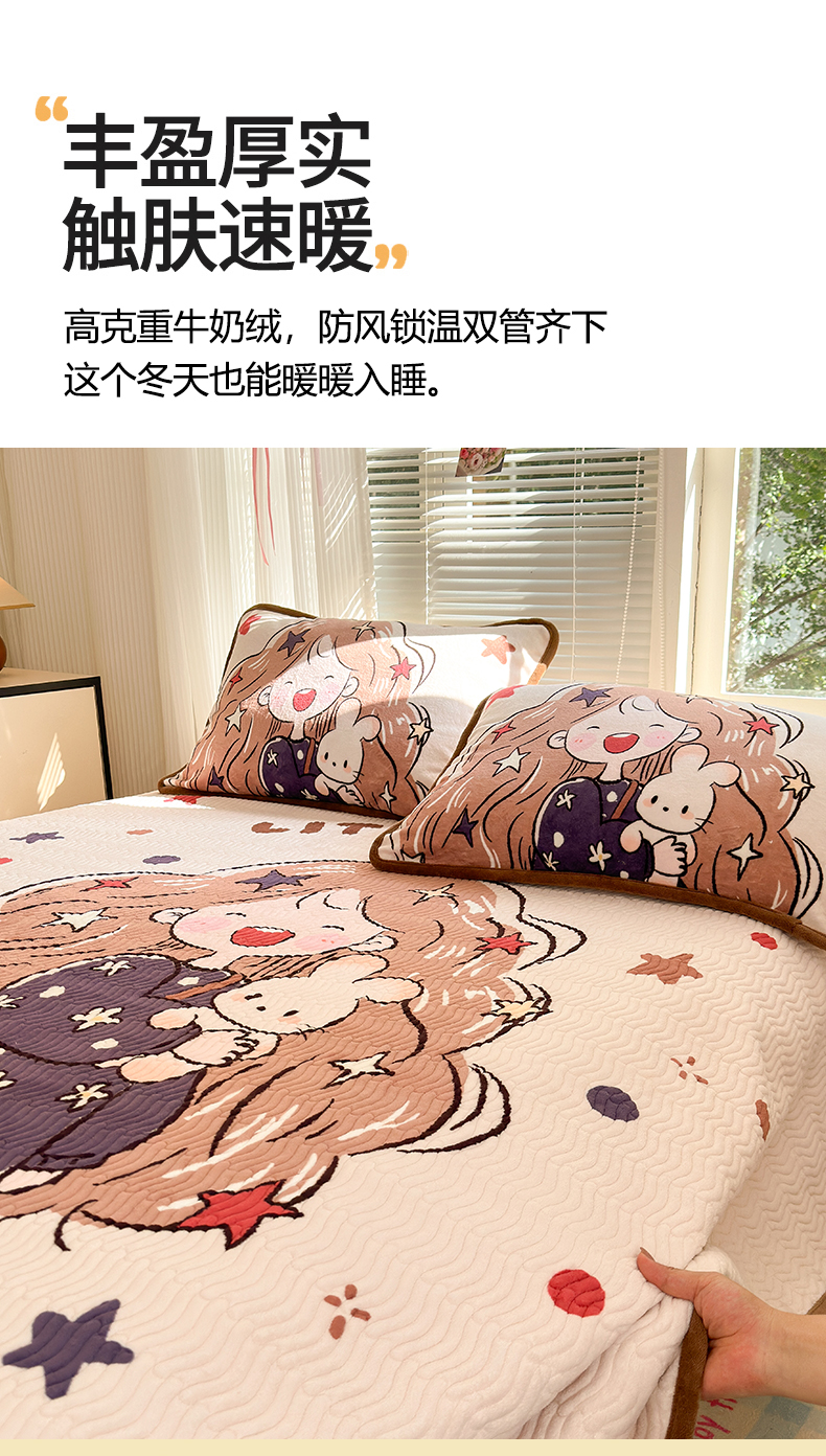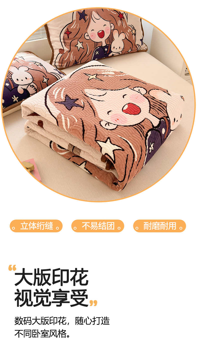 商品名称:寐居家纺 2025新款牛奶绒数码大版单床盖 摩登女孩