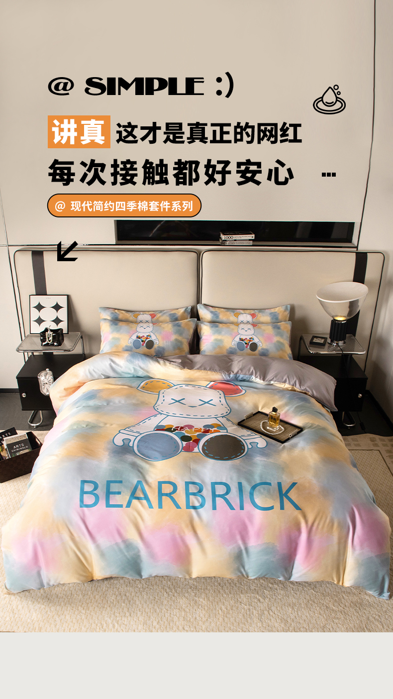 商品名称:色鬼布艺高端家居主号 2025新款直播热款网红款四季棉四件套 萌熊队长