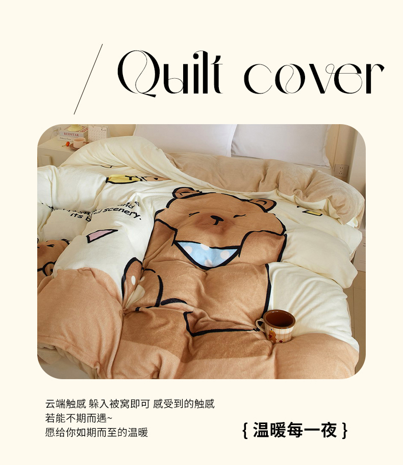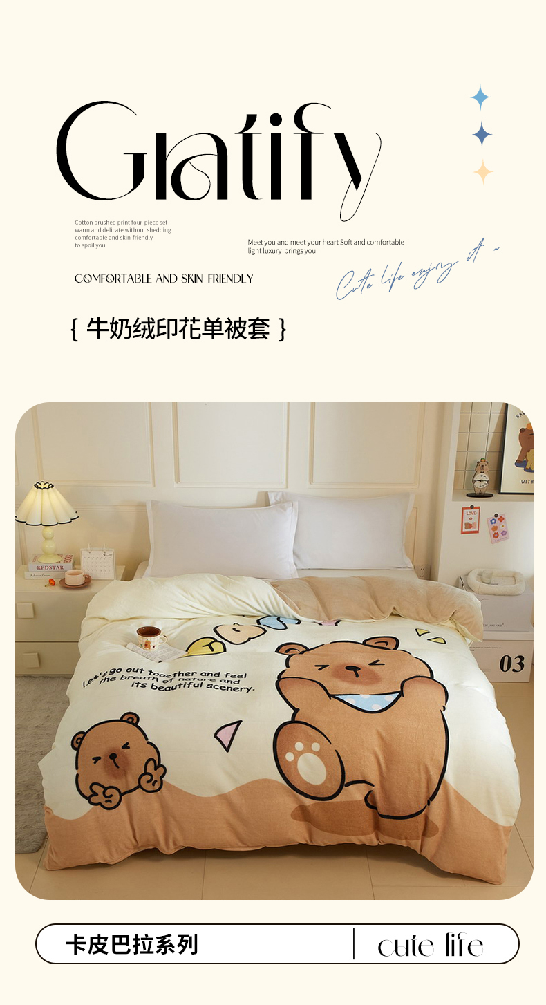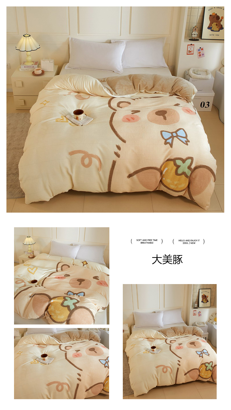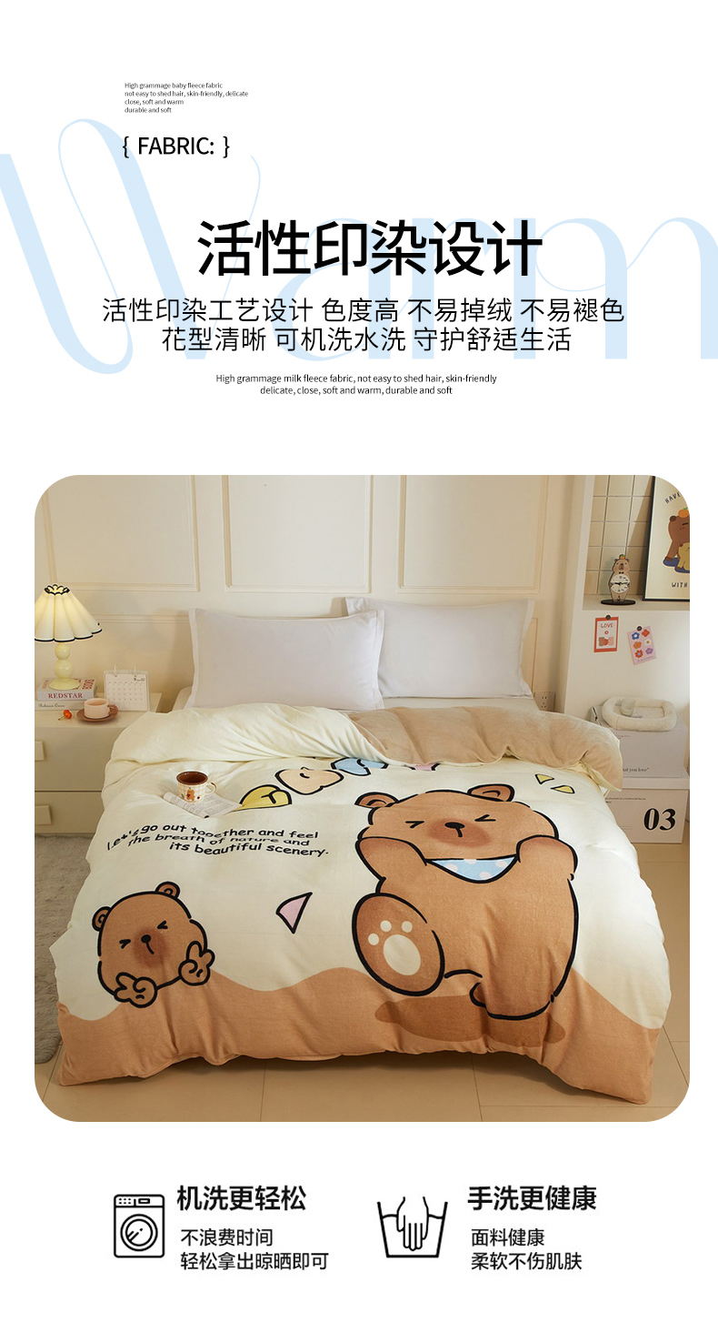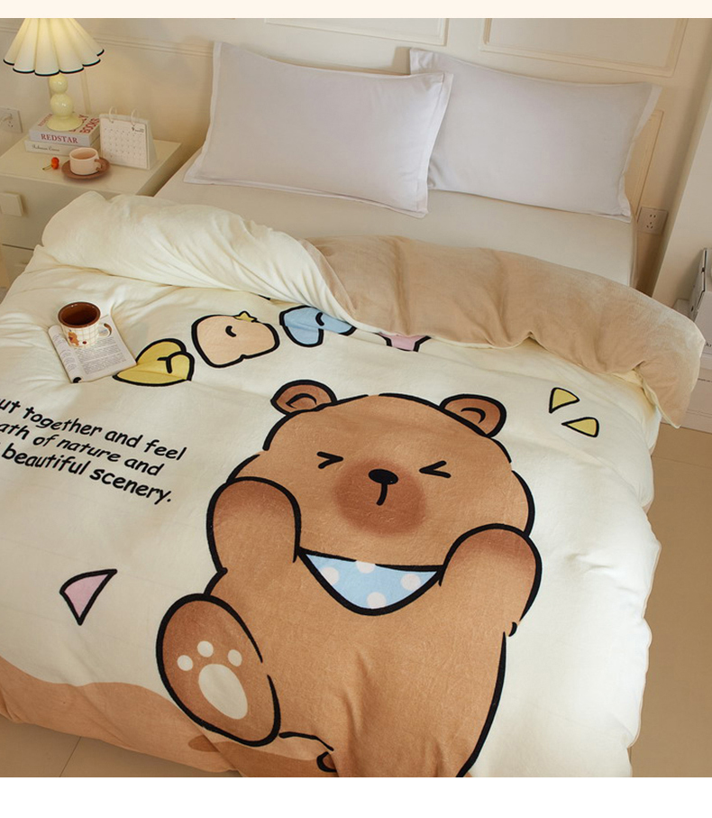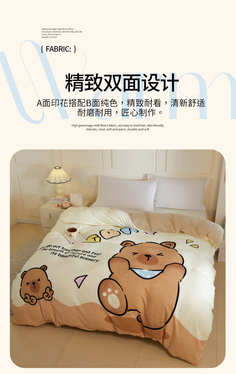 商品名称:蘭菲家纺 2025新款卡皮巴拉牛奶绒单被套 被套单件 熊巴拉
