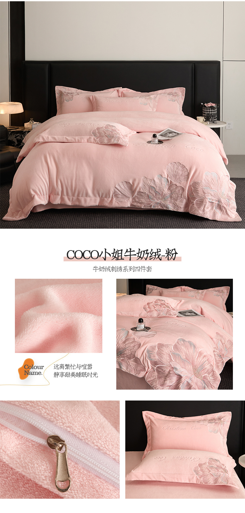 当前位置: 91家纺网 > 商品网购 > 床品套件 > 四件套 > 牛奶绒四件套 > 置顶家纺 2025新款轻奢刺绣牛奶绒四件套-COCO小姐系列 COCO小姐牛奶绒-玉粉