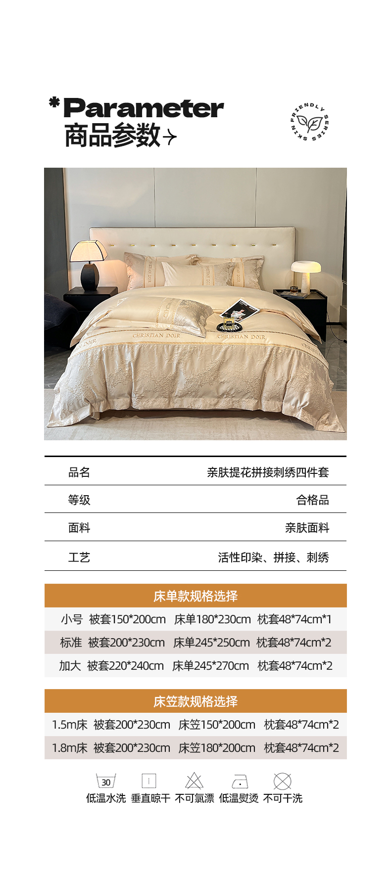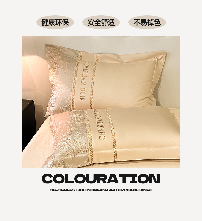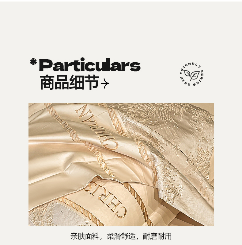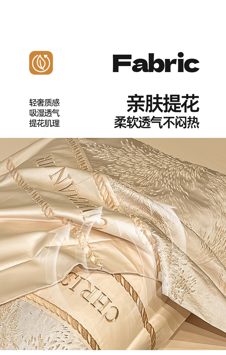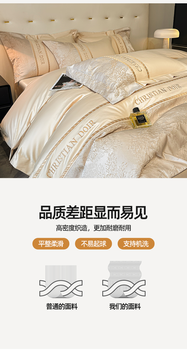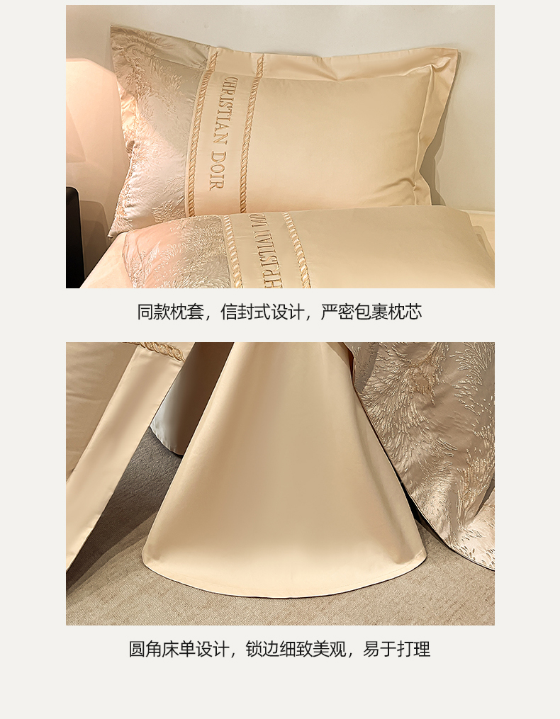 商品名称:置顶家纺 2025新款漫芙提花亲肤系列四件套 优尼-浅香槟