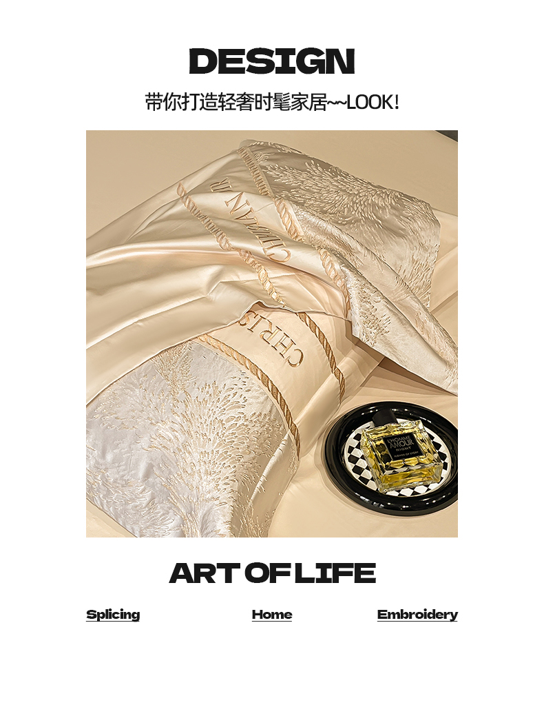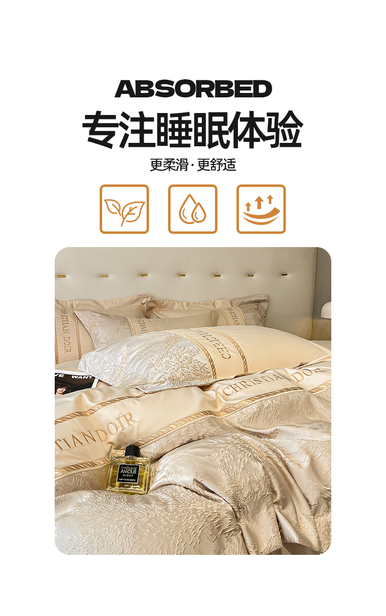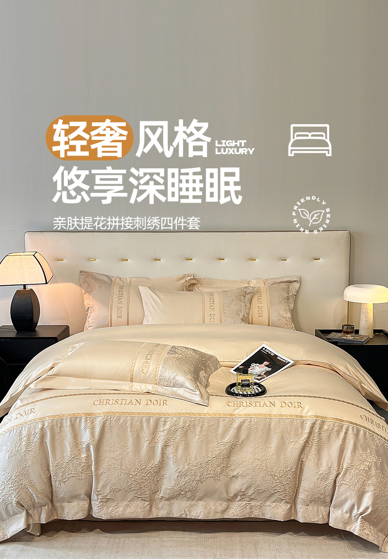 置顶家纺 2025新款漫芙提花亲肤系列四件套 优尼-浅香槟