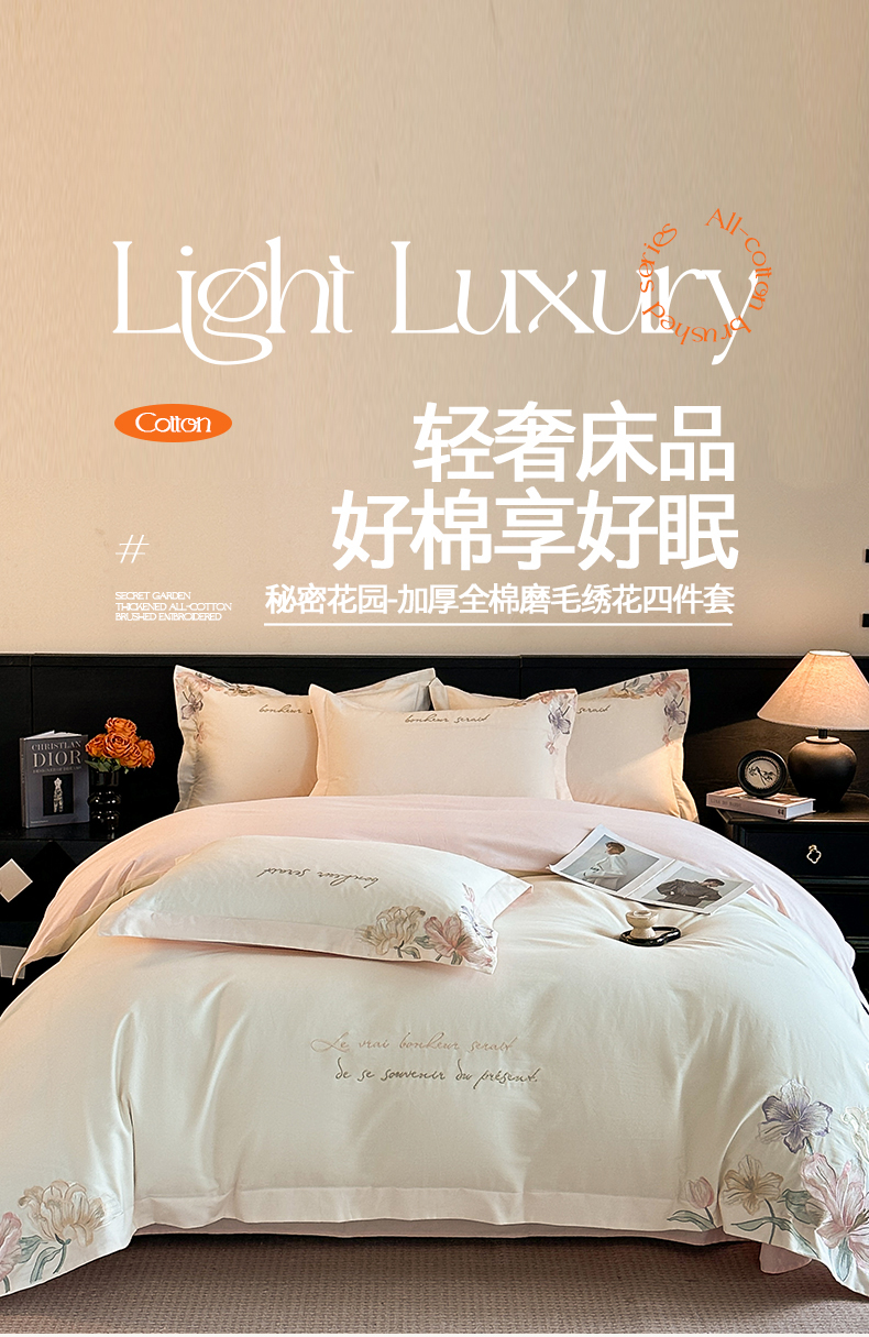 当前位置: 91家纺网 > 商品网购 > 床品套件 > 四件套 > 磨毛活性四件套 > 置顶家纺 2025秋冬新款加厚全棉磨毛四件套-秘密花园 秘密花园-奶白+粉