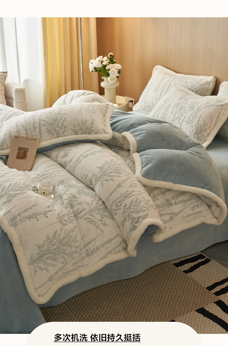 当前位置: 91家纺网 > 商品网购 > 床品套件 > 四件套 > 牛奶绒四件套 > 晨曦家纺 2025新款兔毛包边雕花琅花牛奶绒四件套复古高级感轻奢 梦香