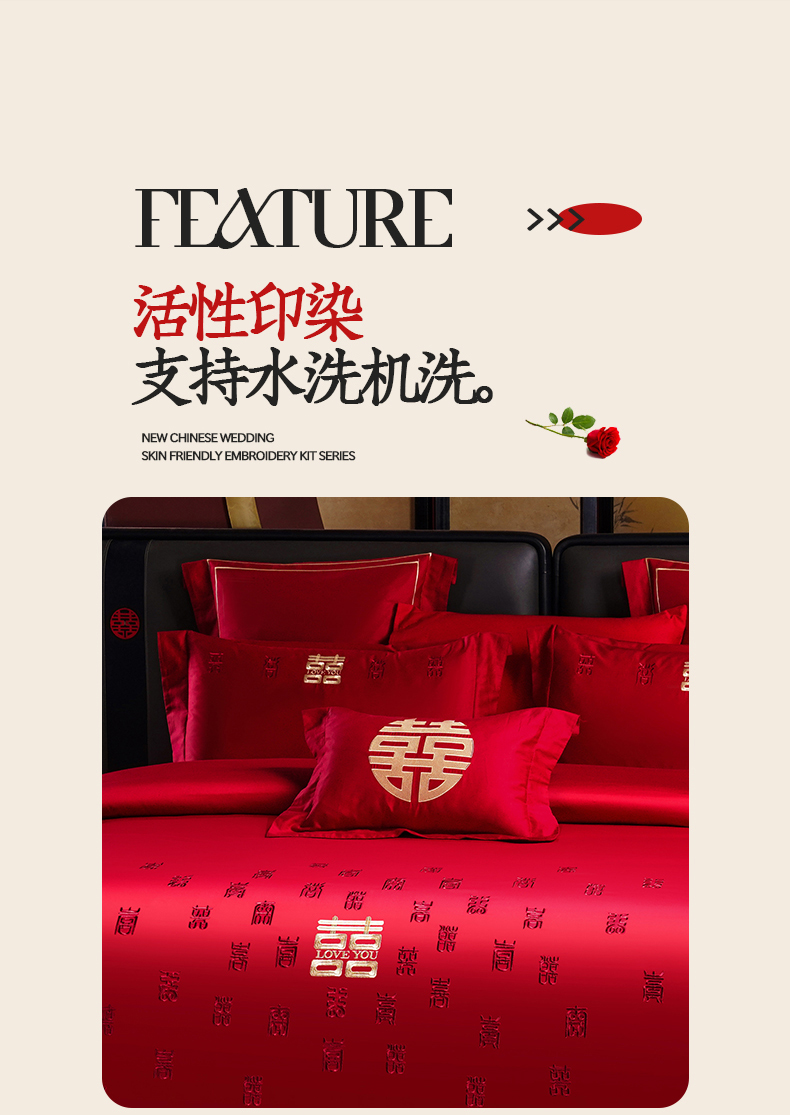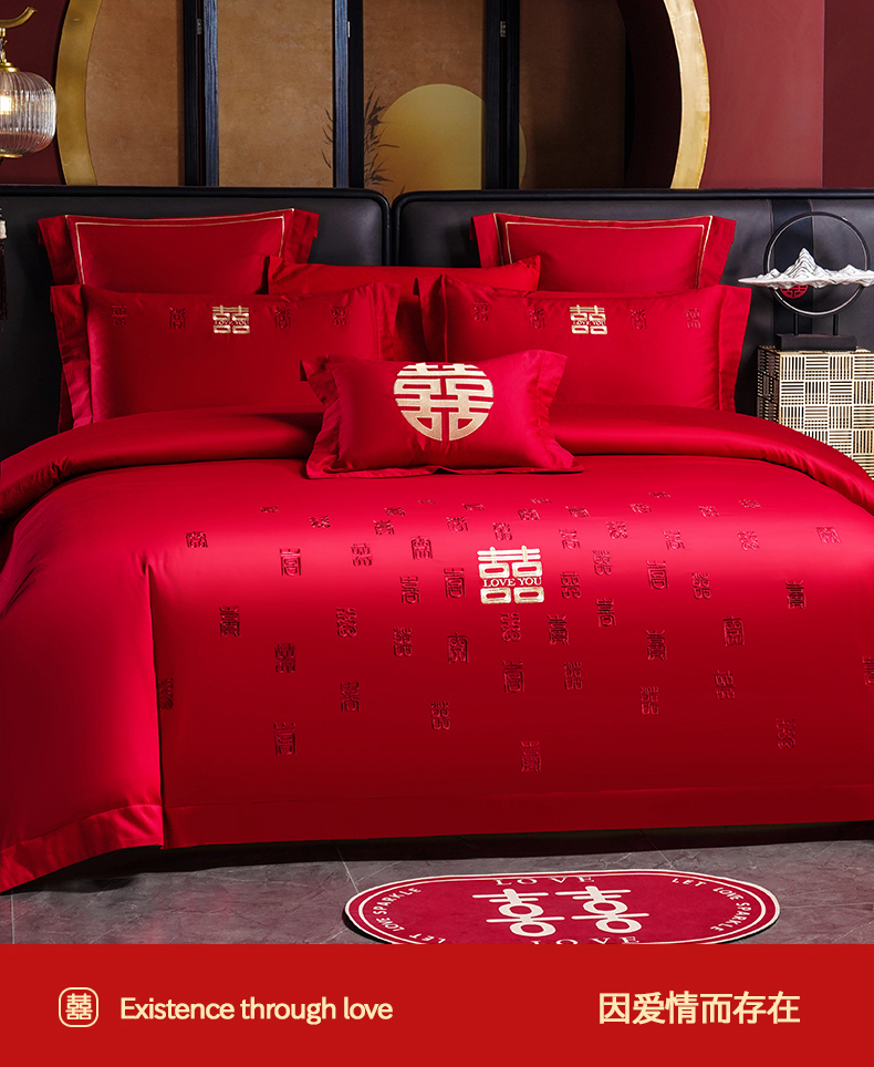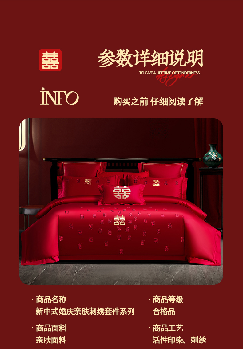 当前位置: 91家纺网 > 商品网购 > 床品套件 > 四件套 > 婚庆四件套 > 置顶家纺 2025新款新中式婚庆亲肤刺绣四件套 百囍图-大红