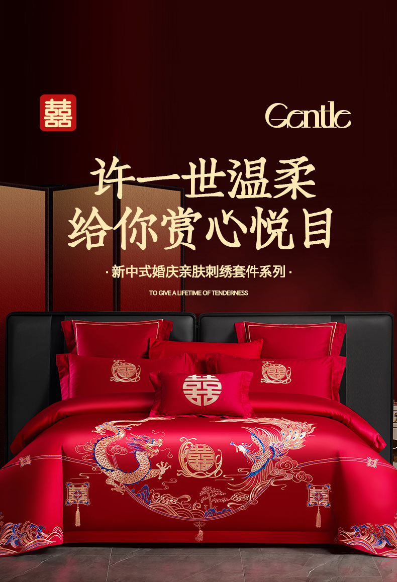 置顶家纺 2025新款新中式婚庆亲肤刺绣四件套 腰枕