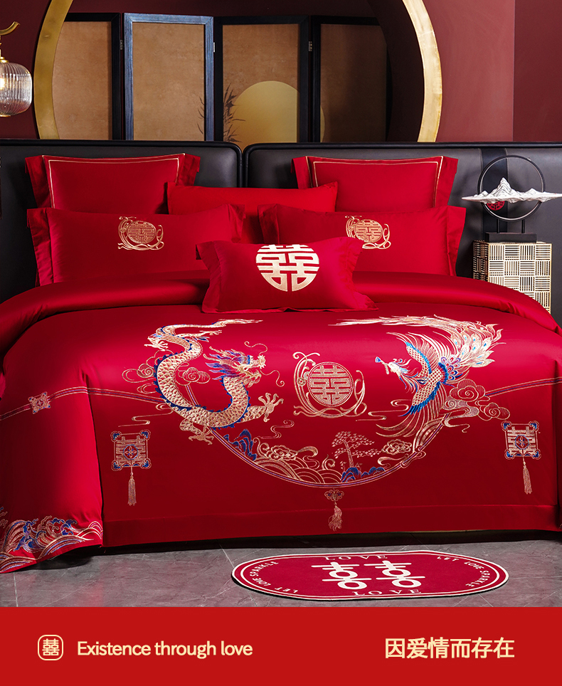 商品名称:置顶家纺 2025新款新中式婚庆亲肤刺绣四件套 腰枕