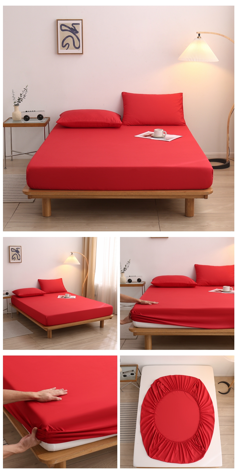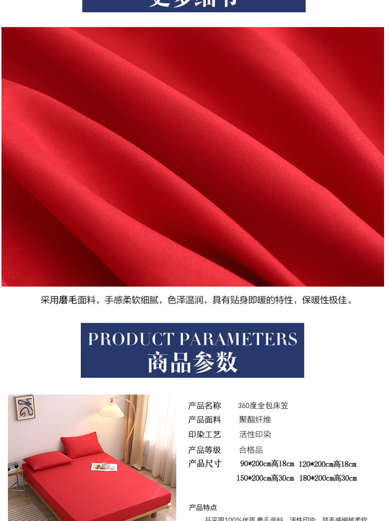 商品名称:啊雅家居 2025新款简约单人床笠双人床笠水洗磨毛床笠 红色