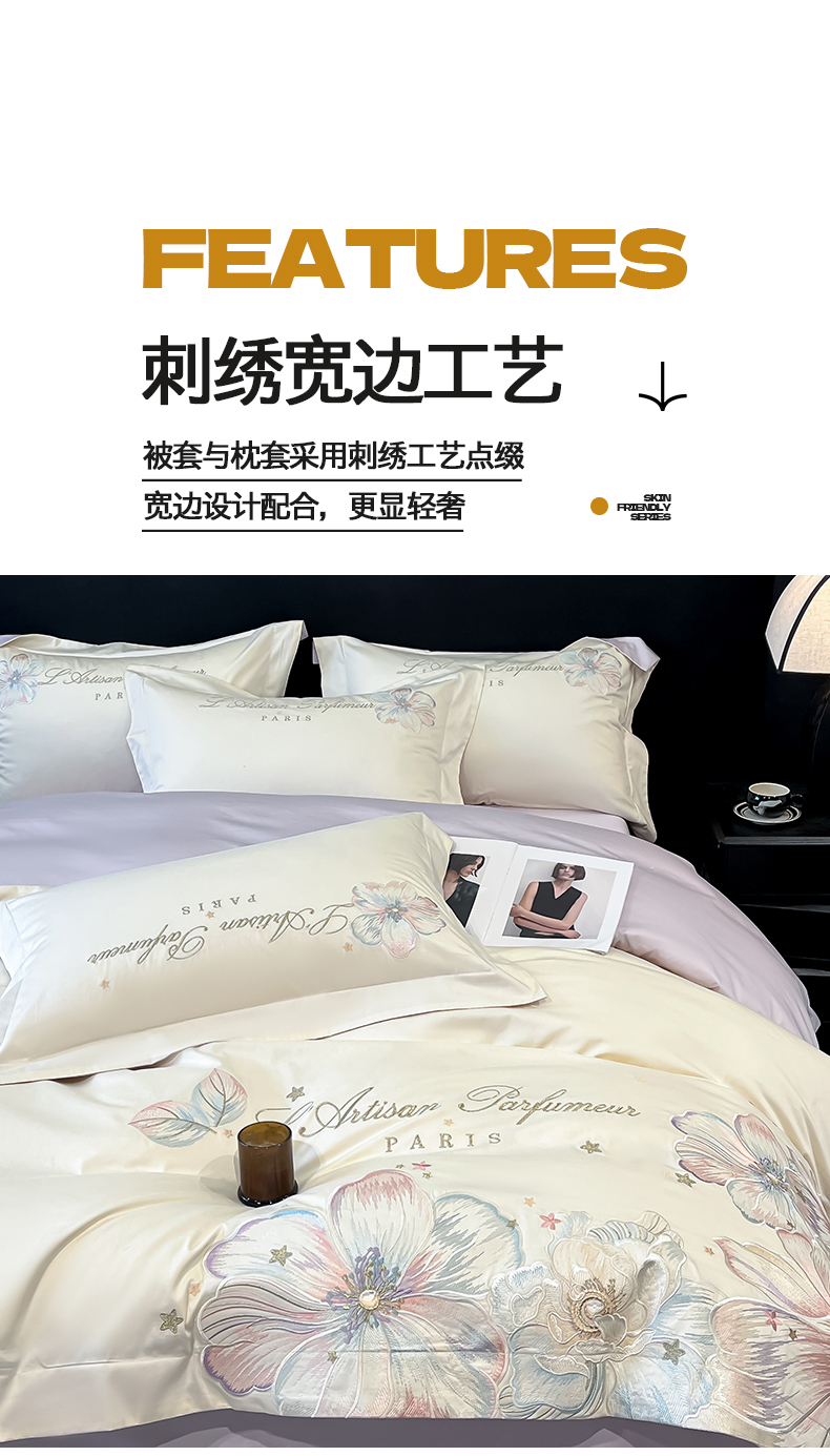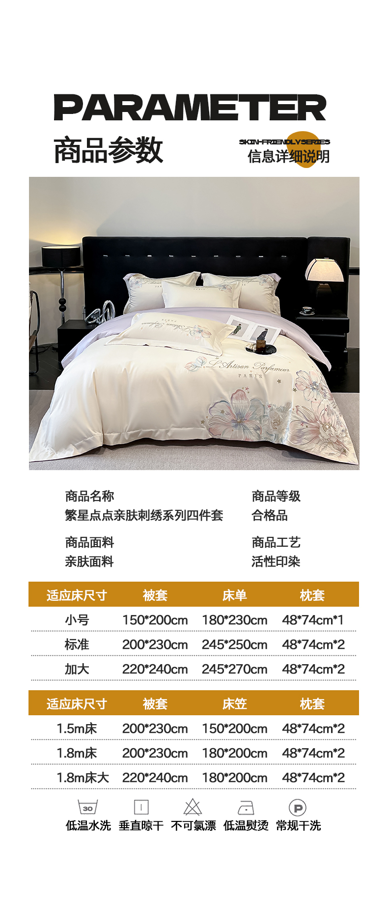 当前位置: 91家纺网 > 商品网购 > 床品套件 > 四件套 > 其它四件套 > 置顶家纺 2025新款亲肤花卉刺绣四件套-繁星点点 繁星点点-奶白+香芋紫