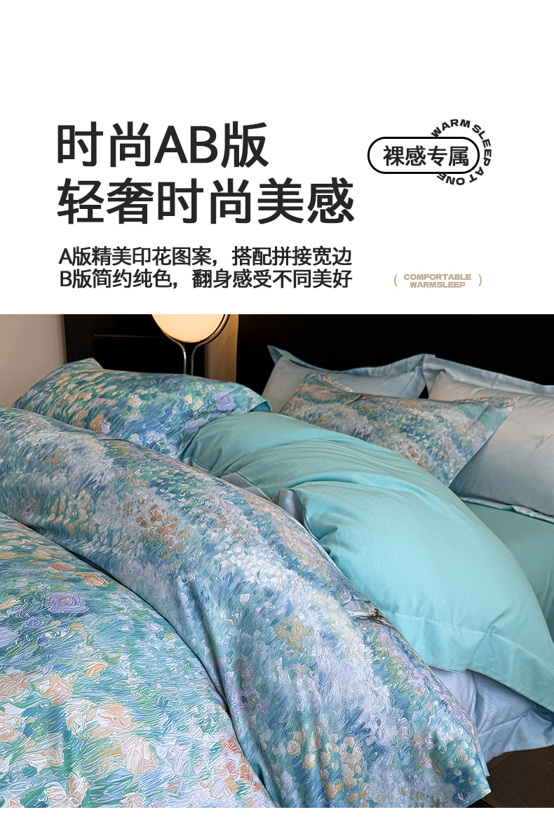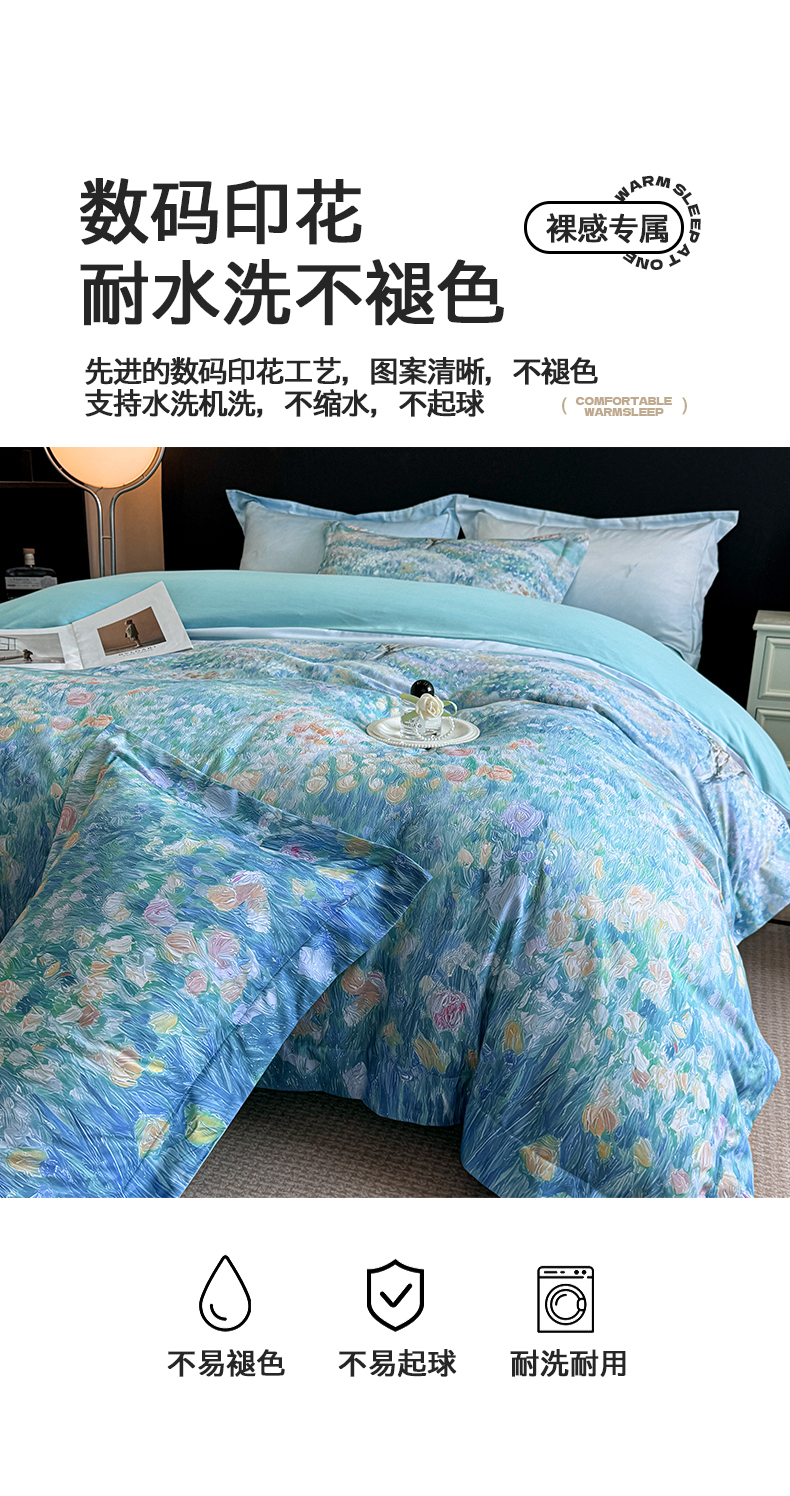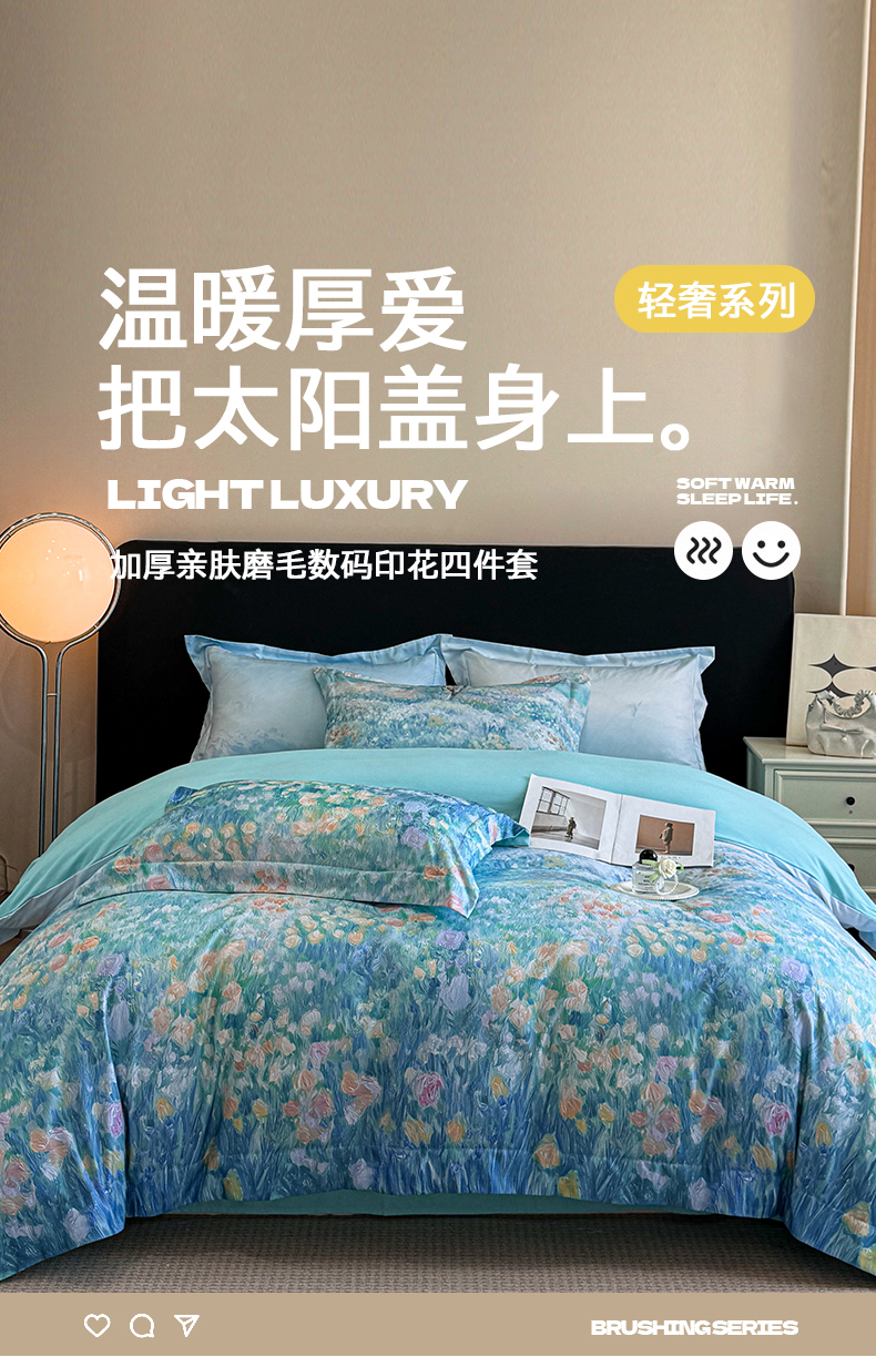 (总)置顶家纺 2025秋冬新款亲肤加厚140克磨毛四件套-普罗旺斯羽翎系列