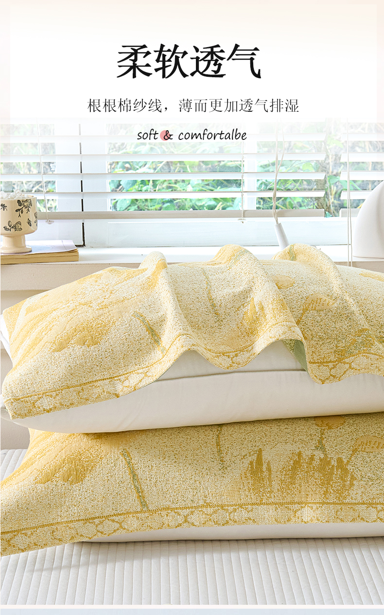 棠薇家纺 2025新款纯棉枕巾一对装男生100全棉枕头巾防头油轻奢高级感棉麻手感 郁金香