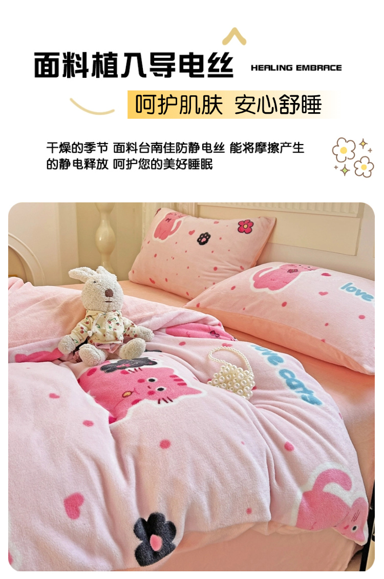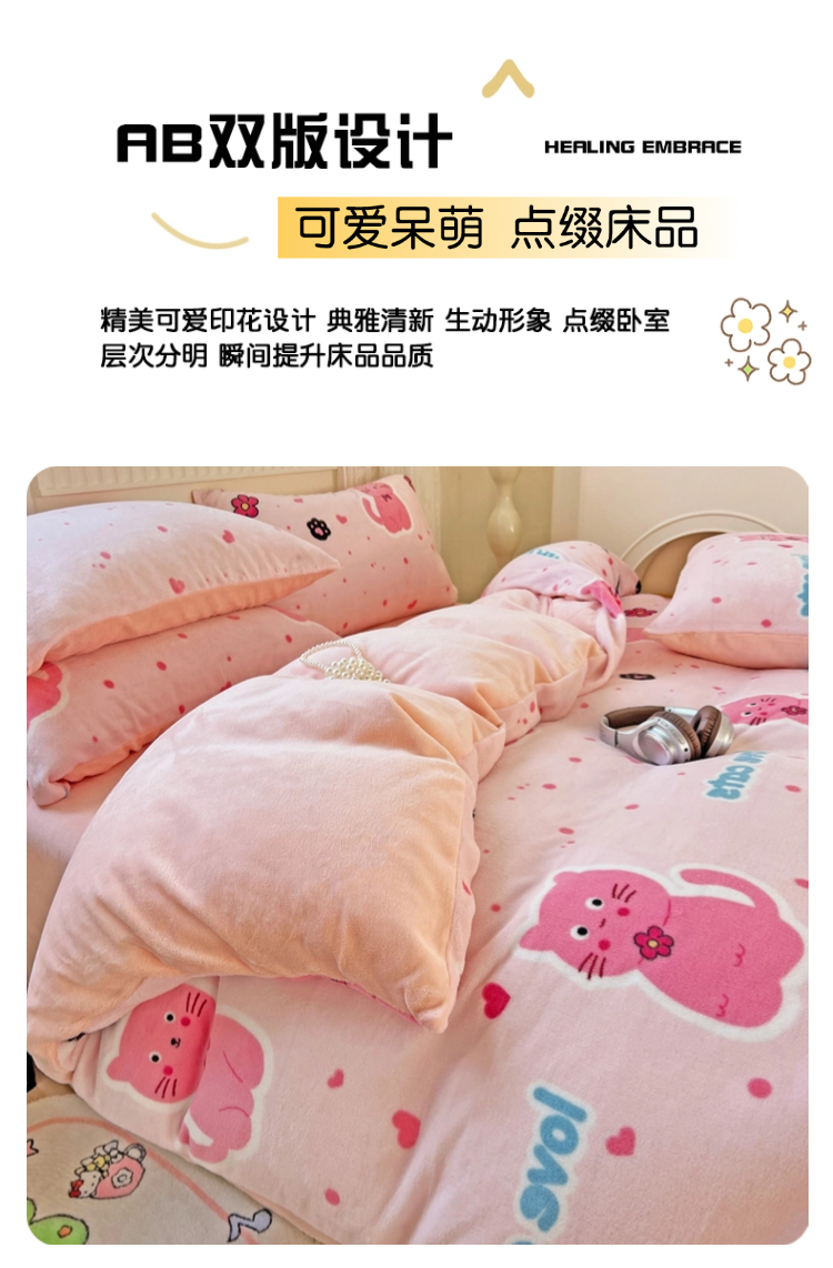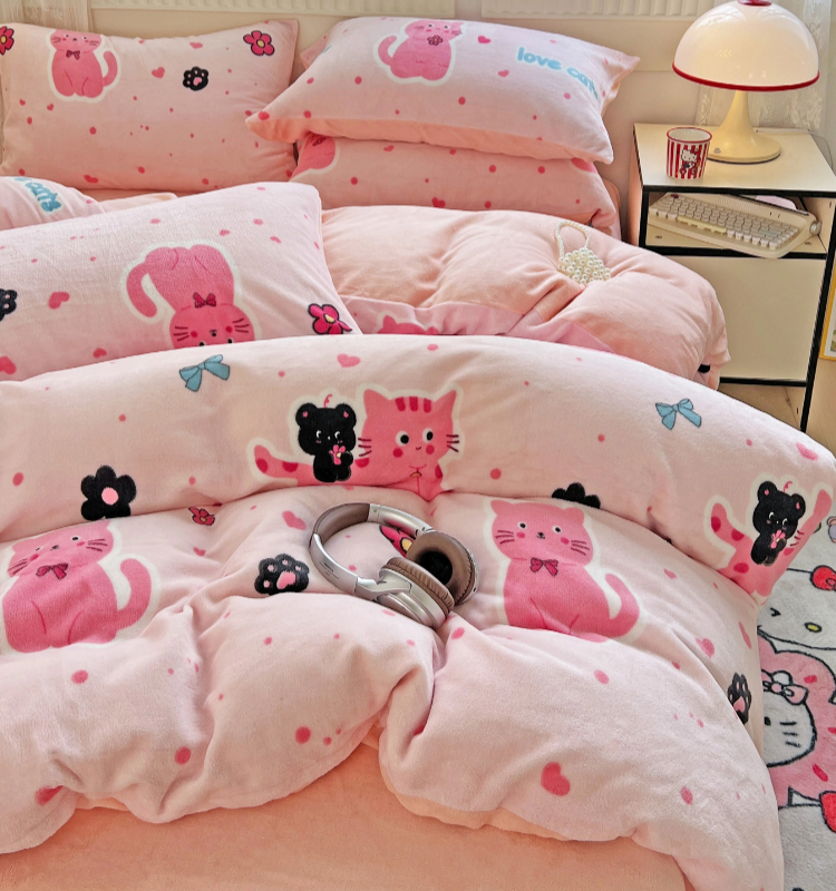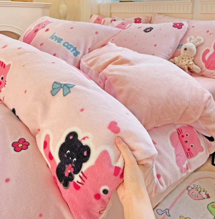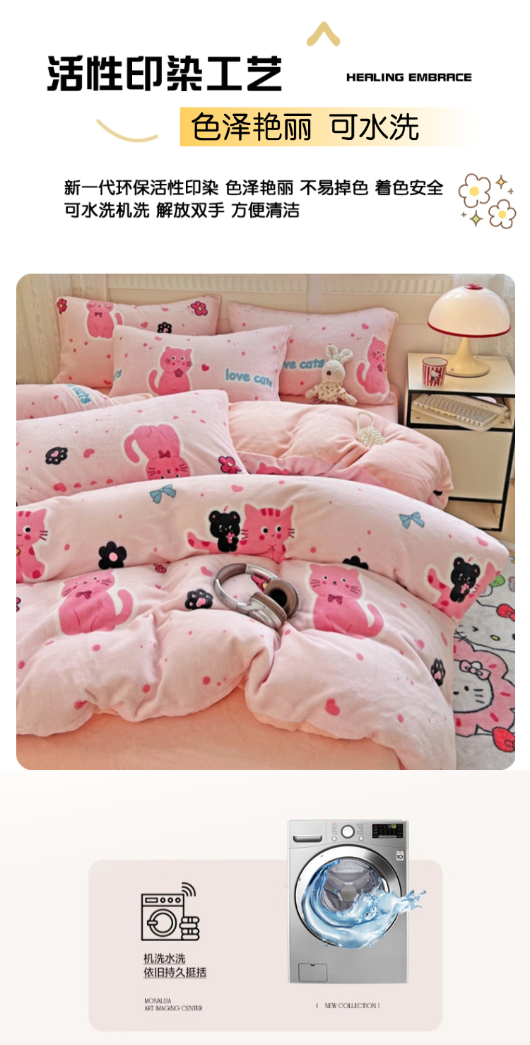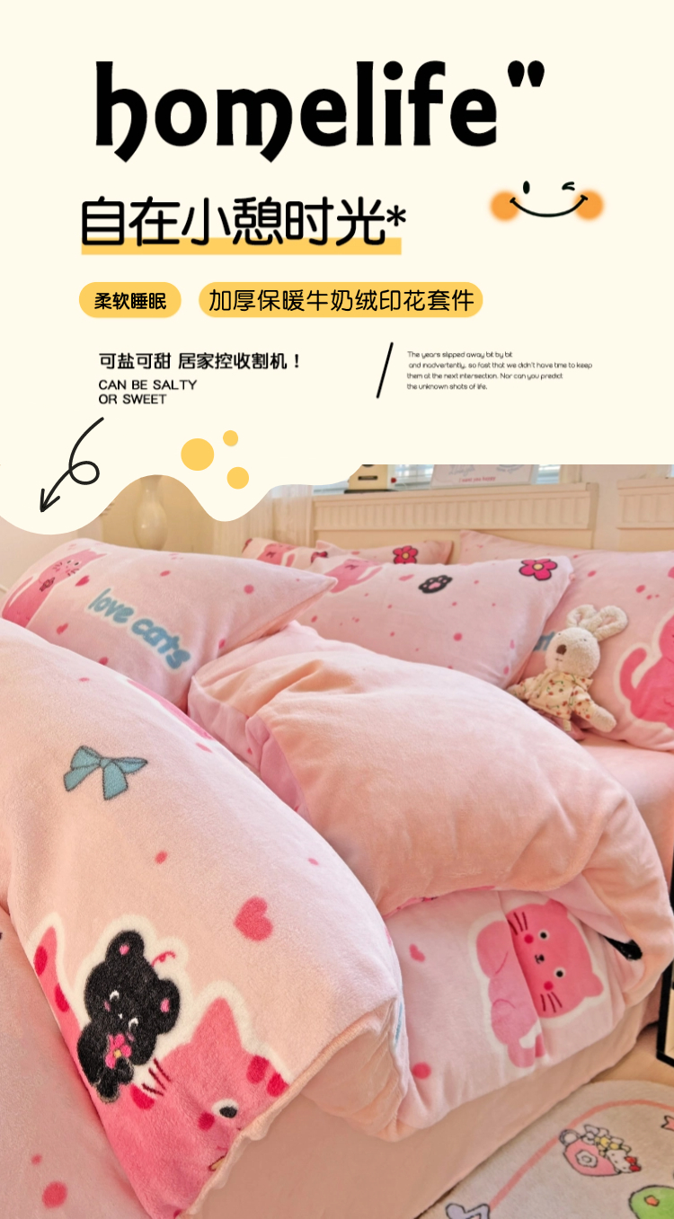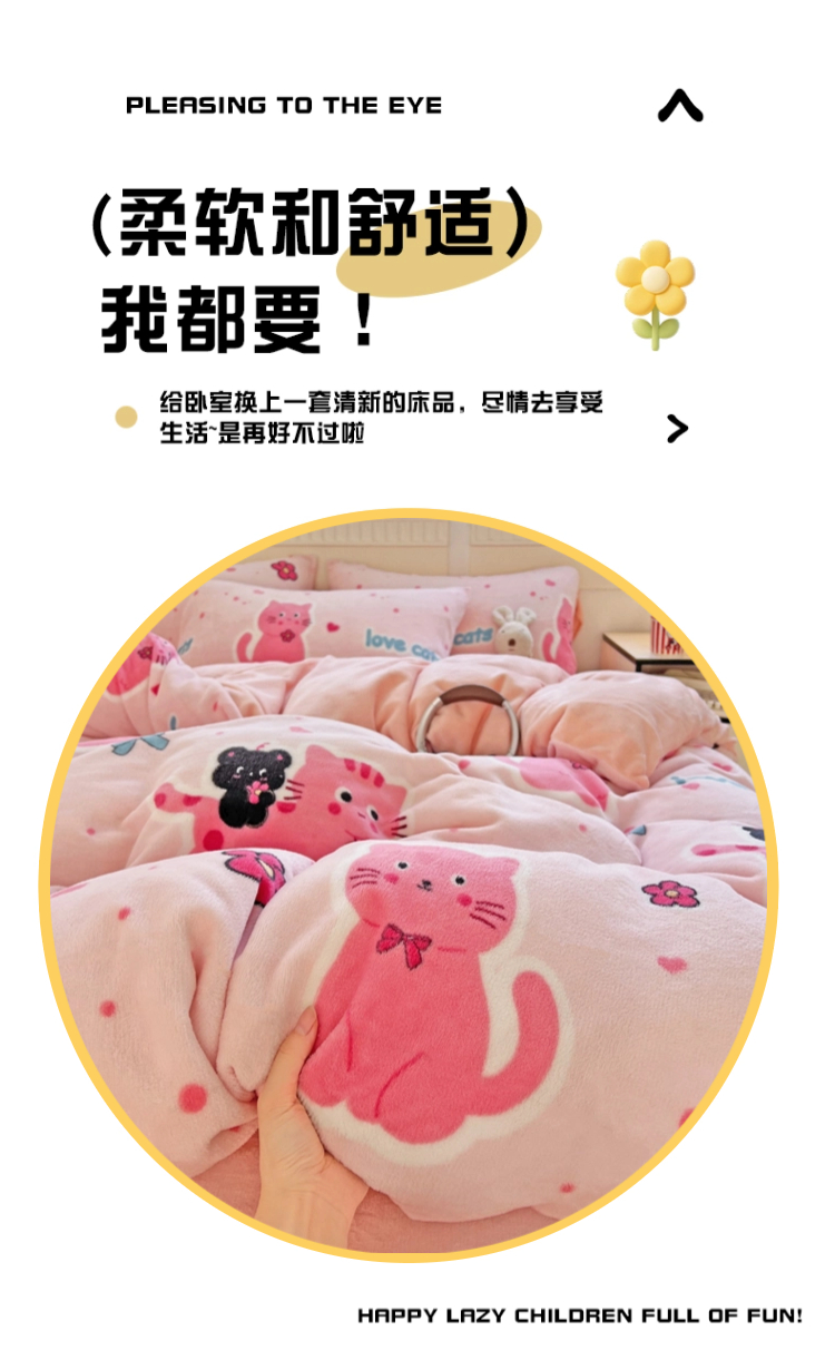 当前位置: 91家纺网 > 商品网购 > 床品套件 > 四件套 > 牛奶绒四件套 > 维娜斯家纺 2025新款牛奶绒印花四件套加厚保暖 欢乐猫咪