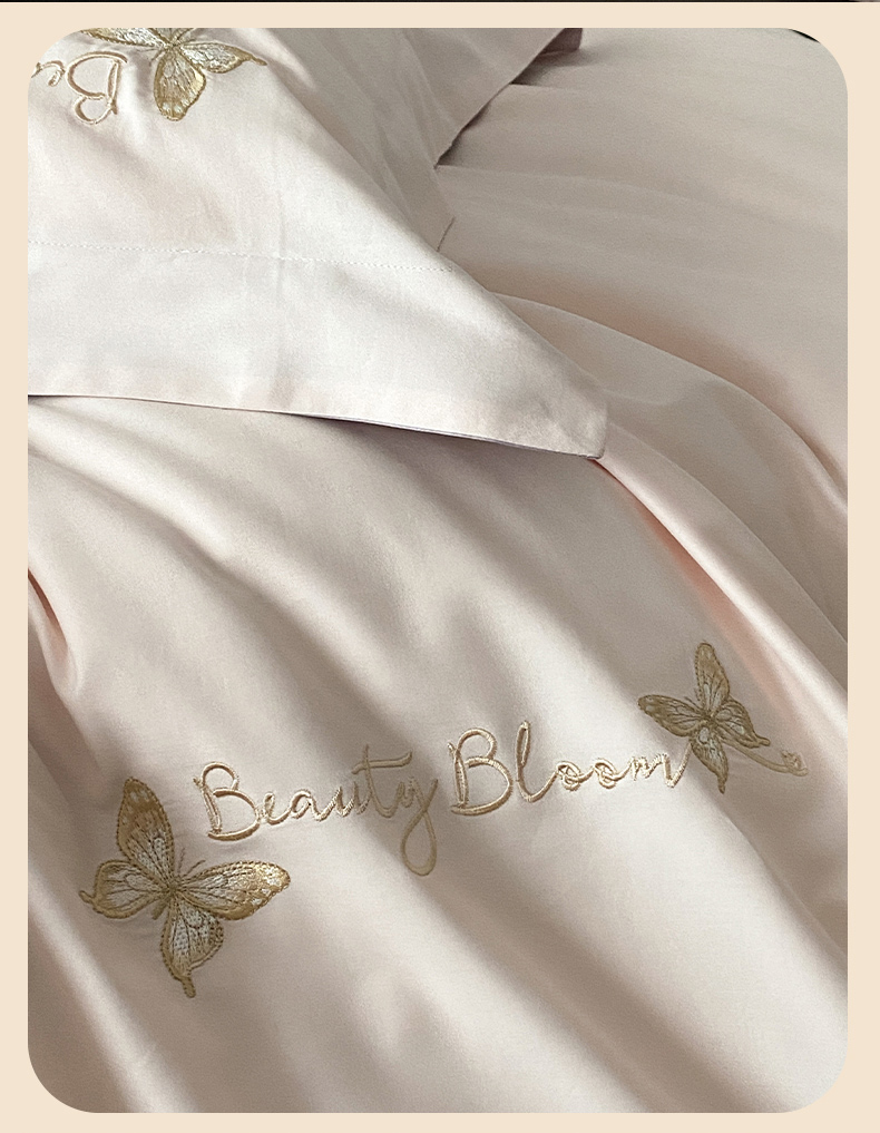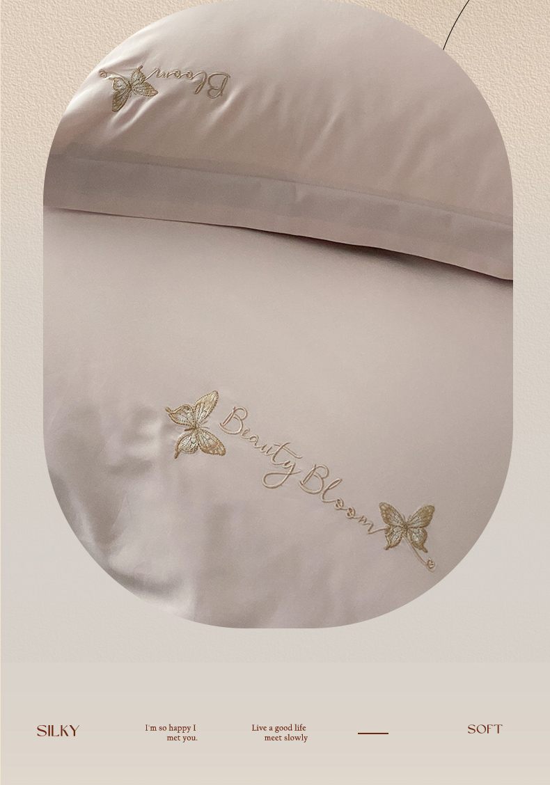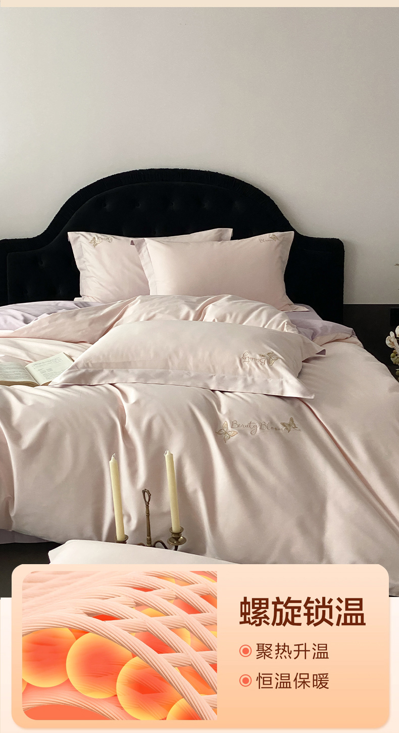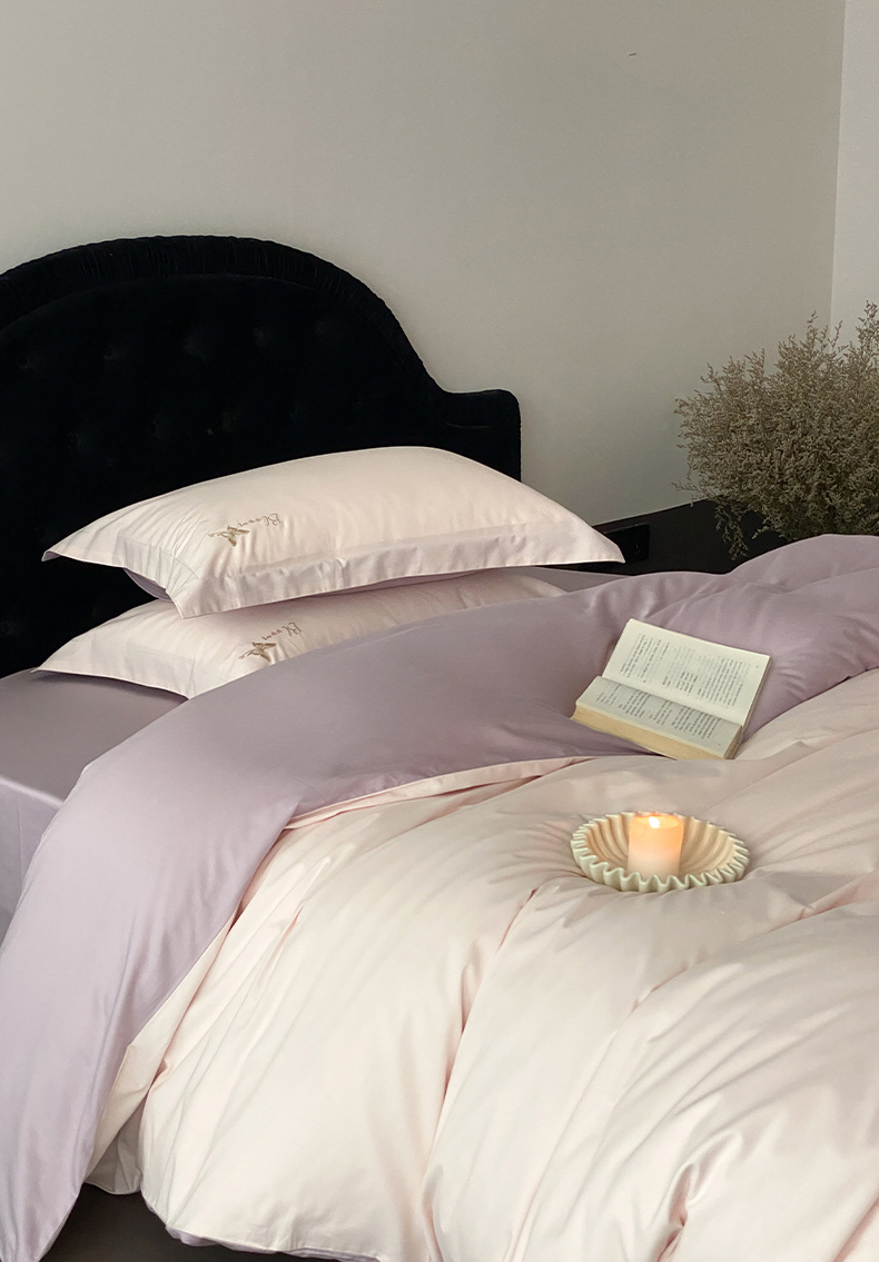 当前位置: 91家纺网 > 商品网购 > 床品套件 > 四件套 > 全棉普通四件套 > 云栖家居 2025秋冬新款50支纯色双拼加厚全棉磨毛被套刺绣100S纯棉四件套-小蝴蝶系列 粉紫