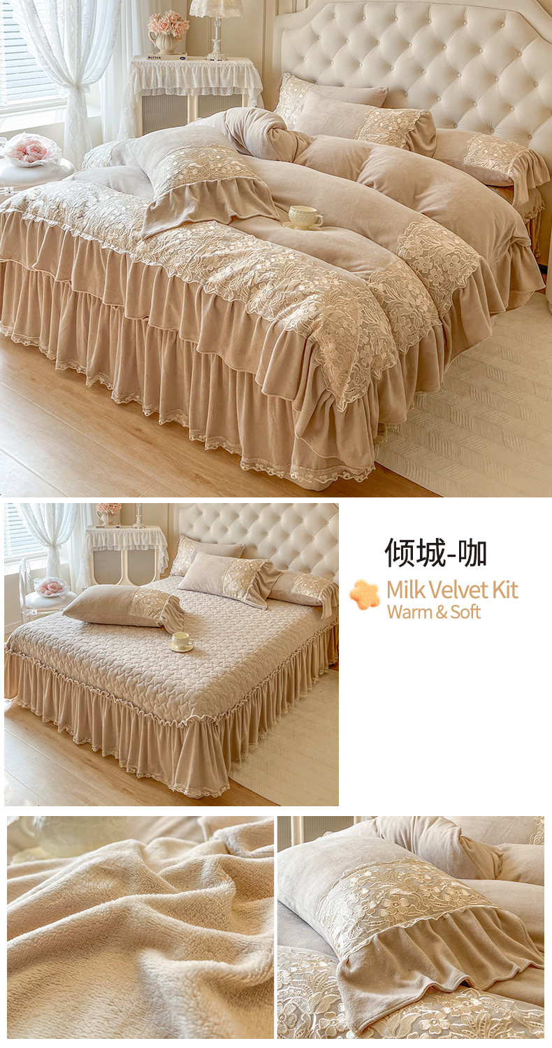 (总)网红馆(ck家纺) 2025新款亲肤舒适牛奶绒蕾丝边床裙四件套-秘密花园,秘密花园-粉色,秘密花园-卡其,秘密花园-米色,秘密花园-紫色