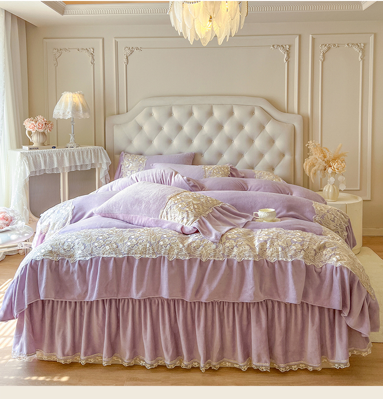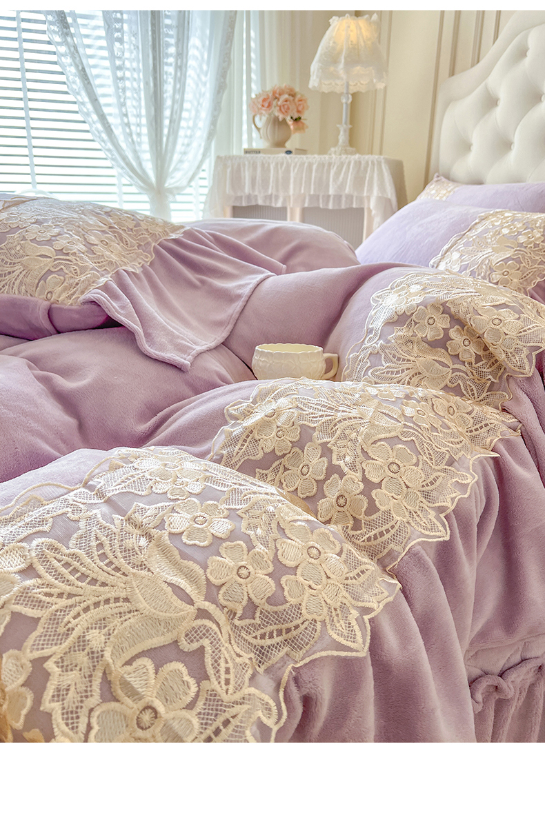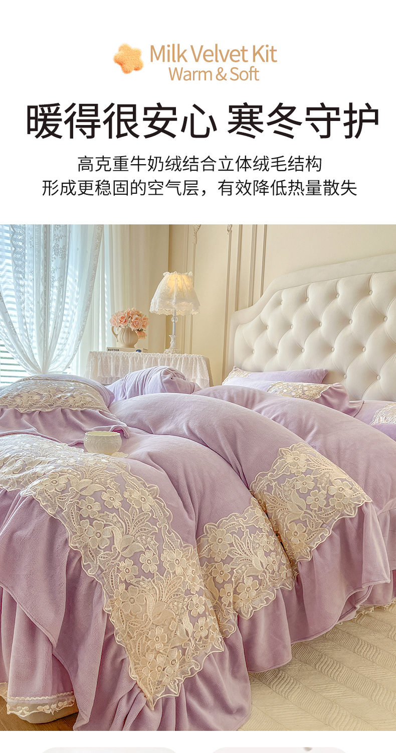 网红馆(ck家纺) 2025新款牛奶绒蕾丝花边倾城系列四件套 倾城-紫
