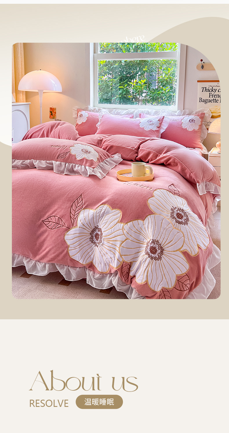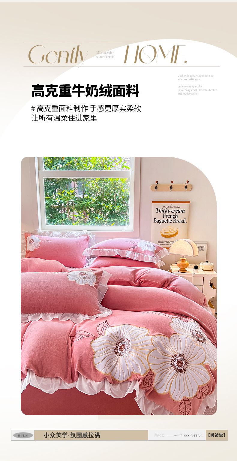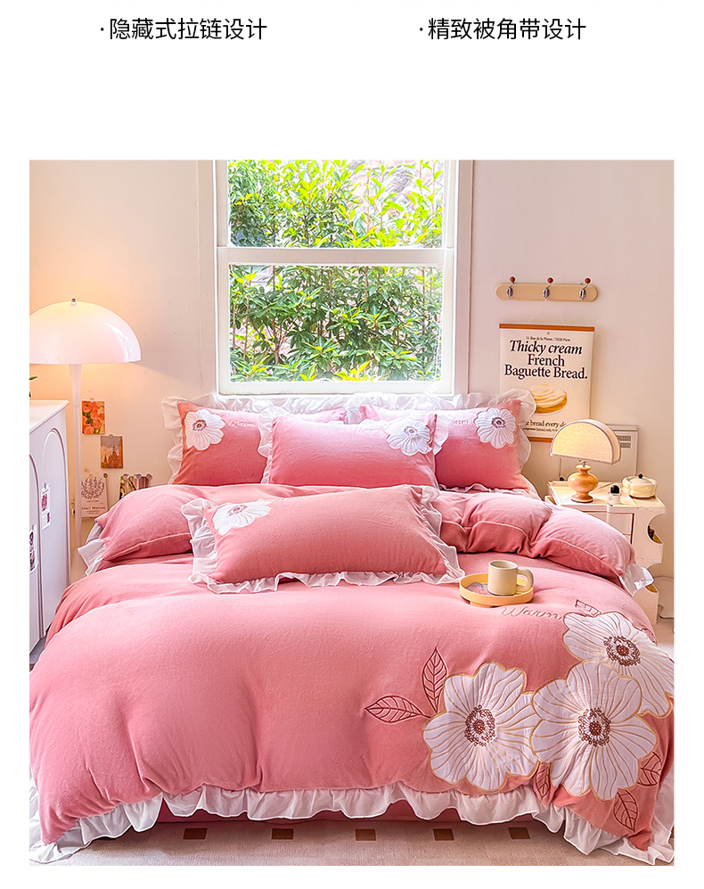 当前位置: 91家纺网 > 商品网购 > 床品套件 > 四件套 > 牛奶绒四件套 > 木子家纺 2025新款半亩花田牛奶绒四件套 淡曙红