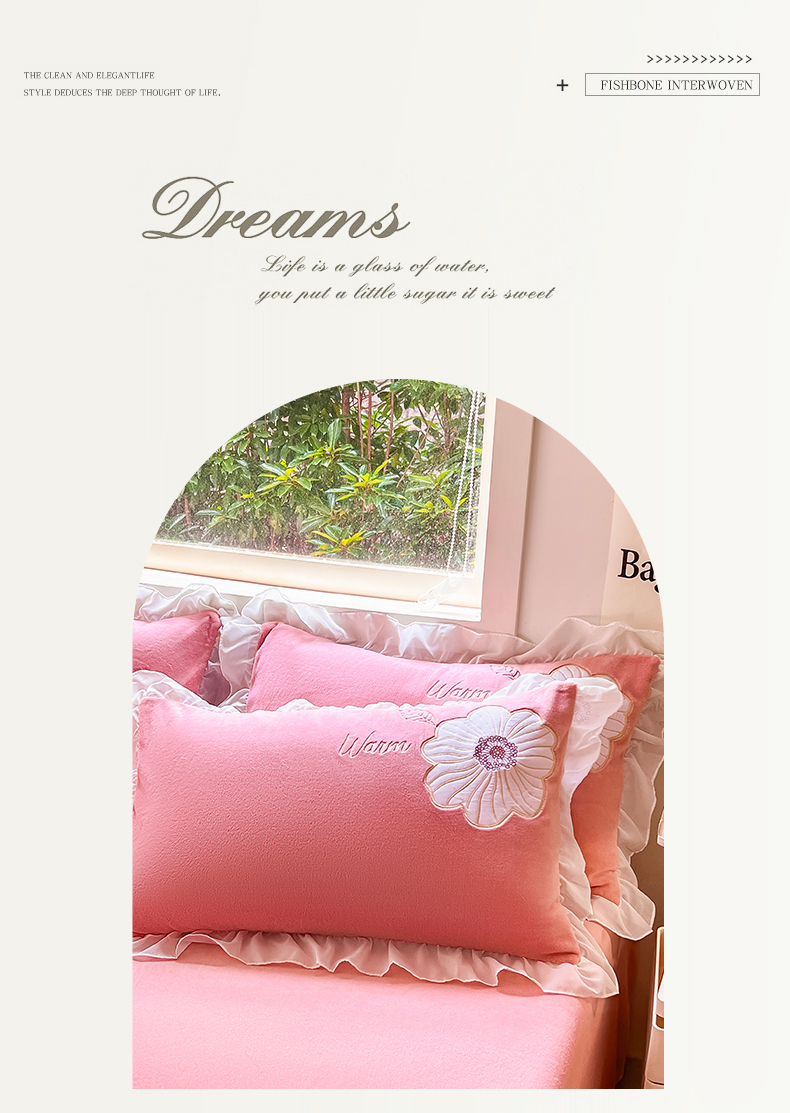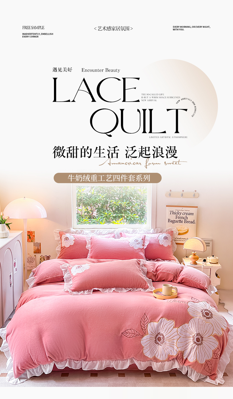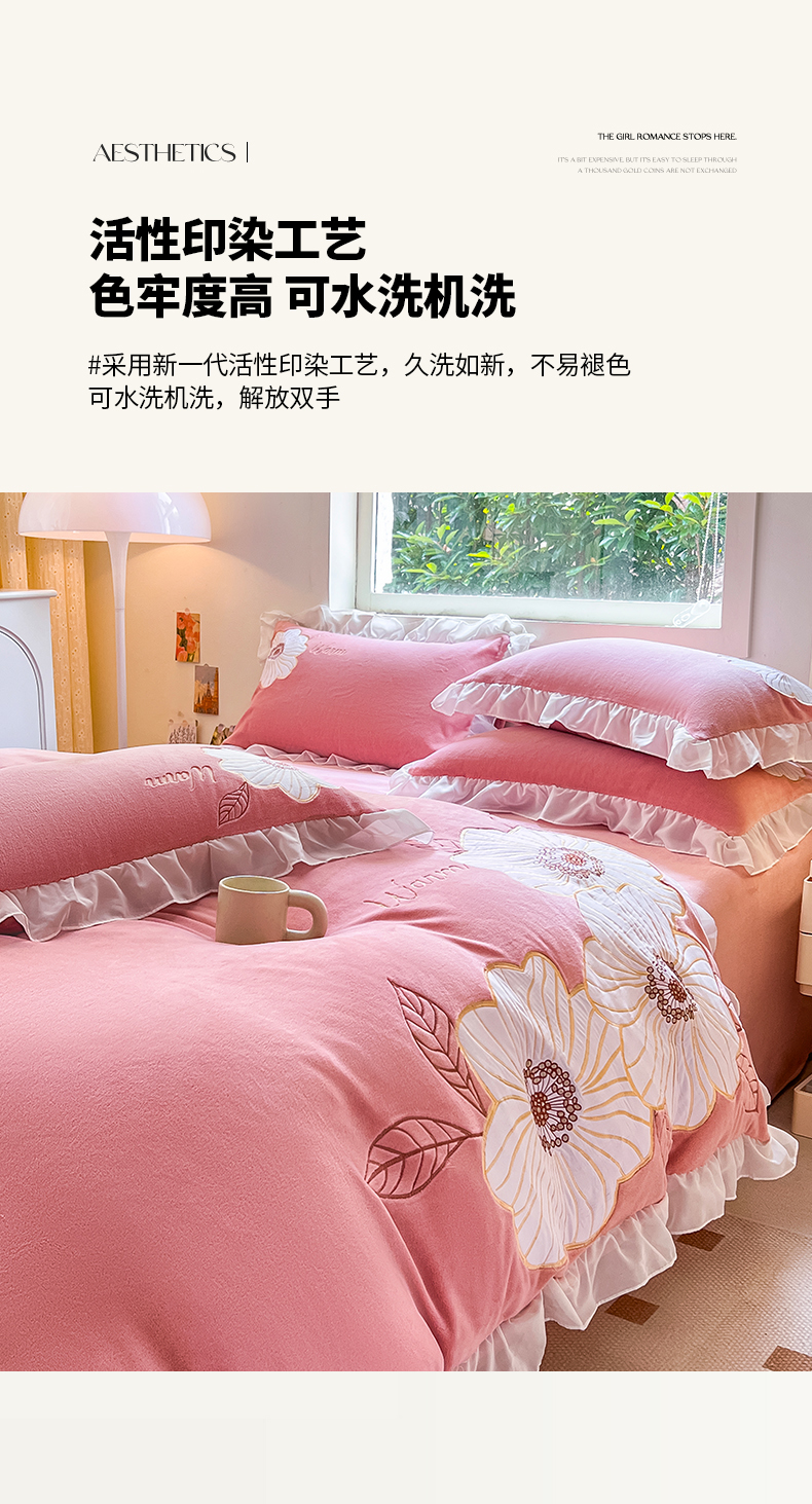 当前位置: 91家纺网 > 商品网购 > 床品套件 > 四件套 > 牛奶绒四件套 > 木子家纺 2025新款半亩花田牛奶绒四件套 淡曙红