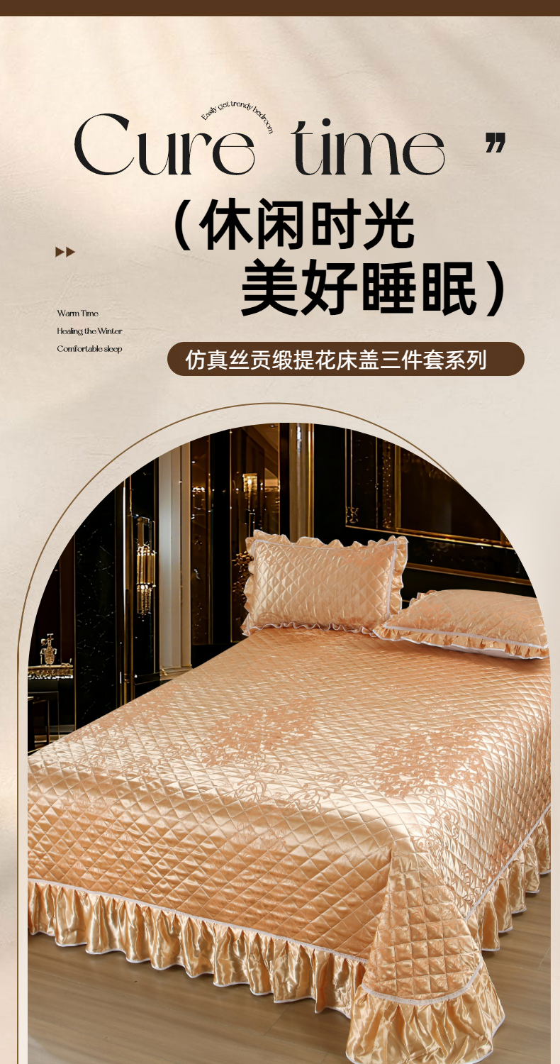 (总)雅绅阁 2025新款仿真丝贡缎提花床盖三件套