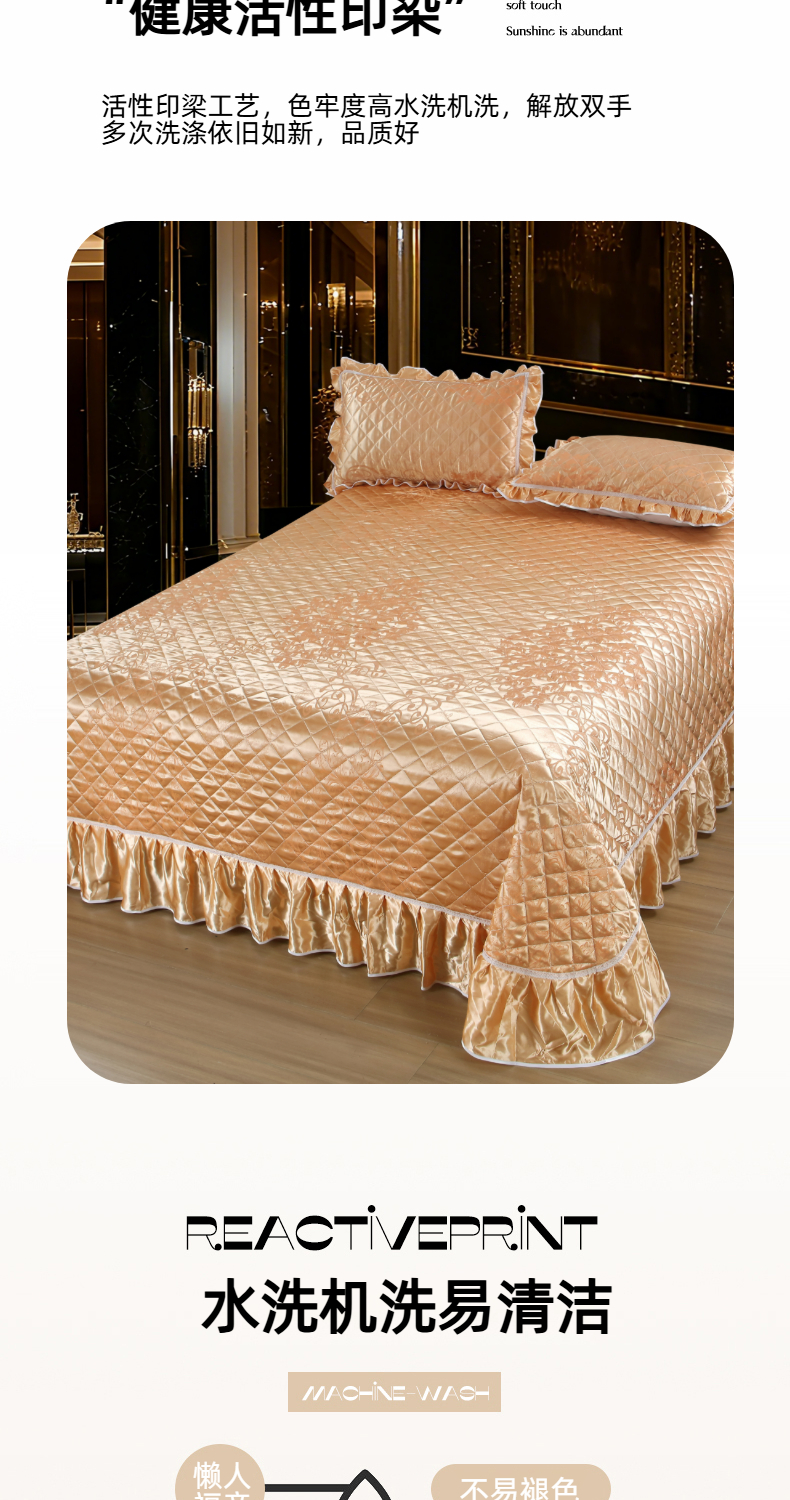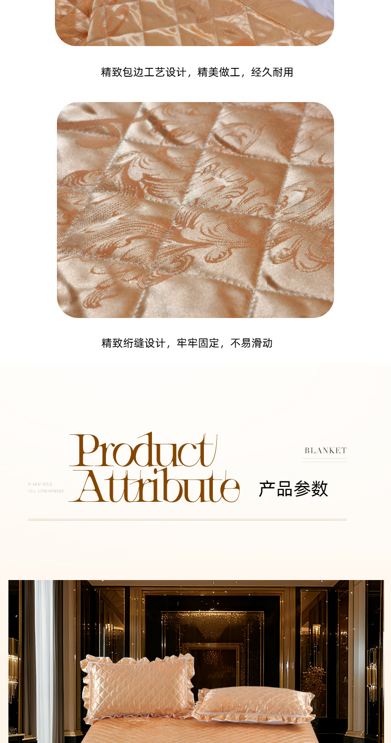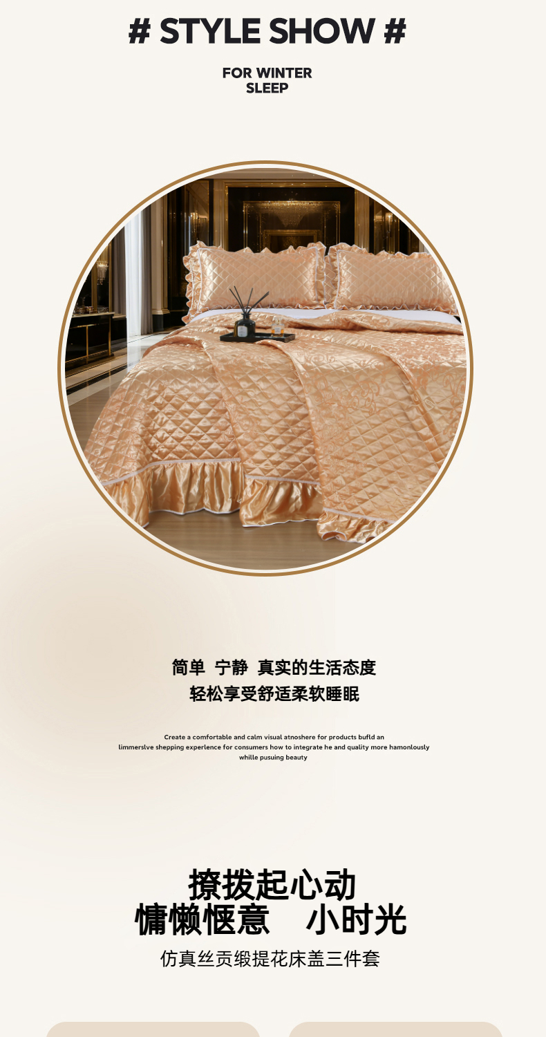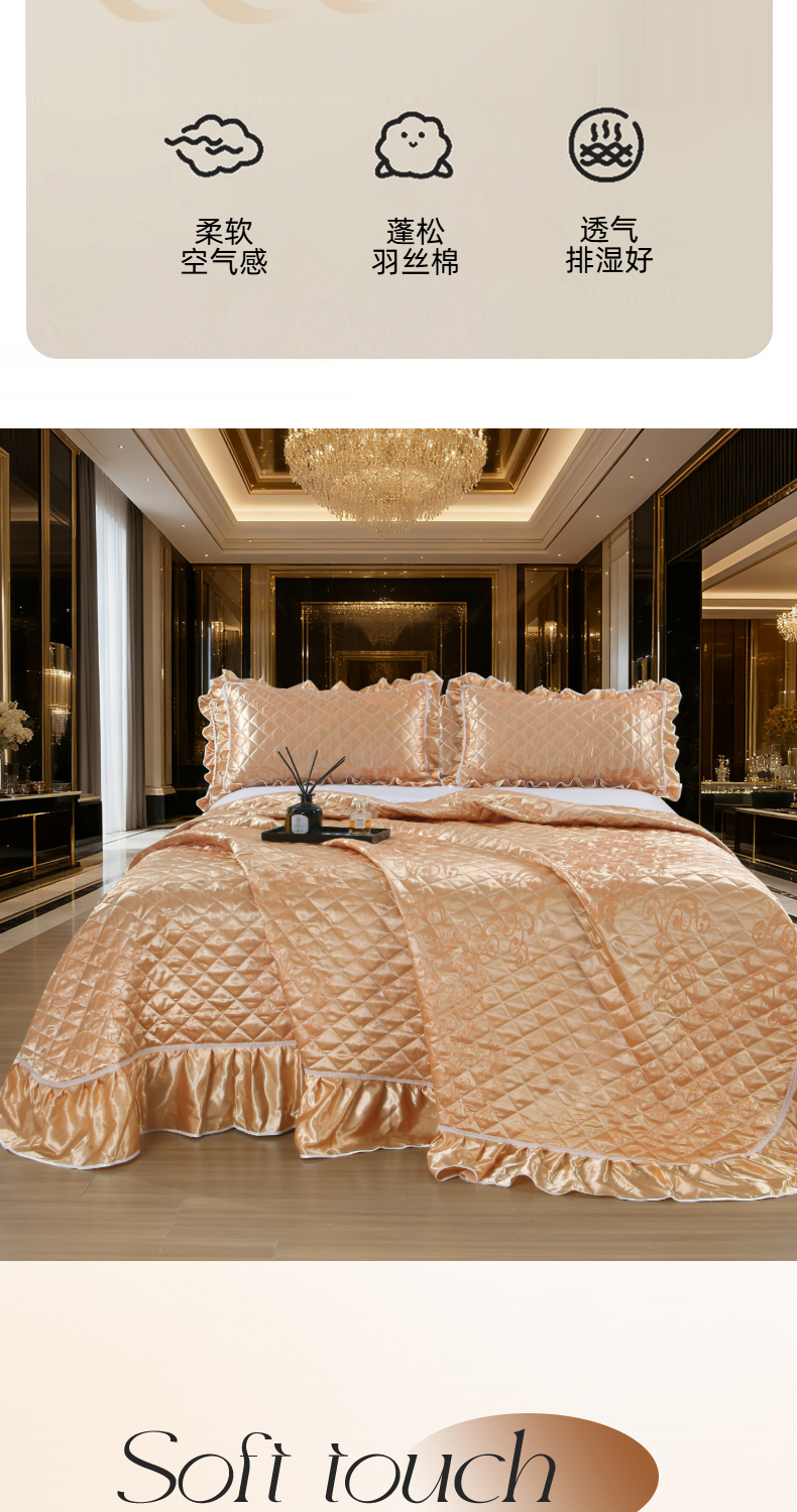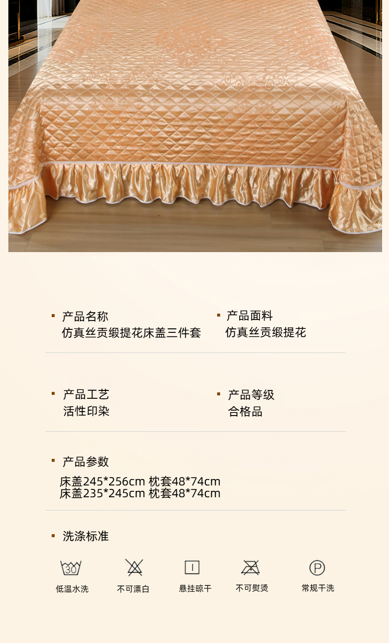 商品名称:(总)雅绅阁 2025新款仿真丝贡缎提花床盖三件套