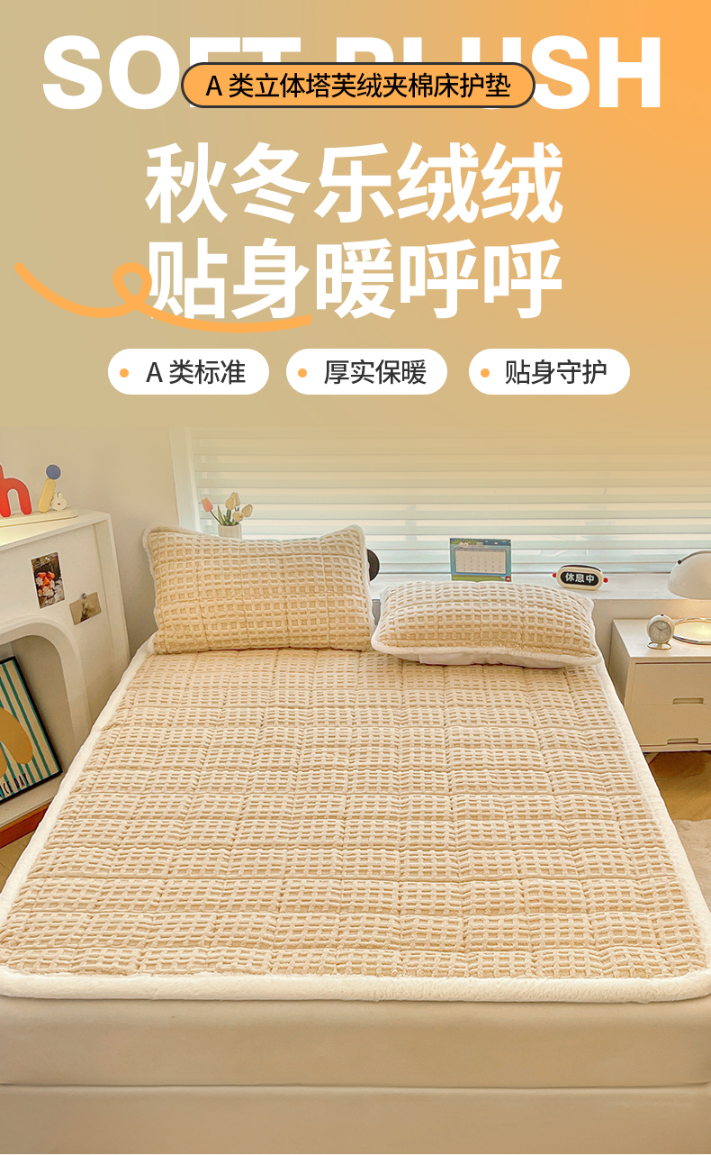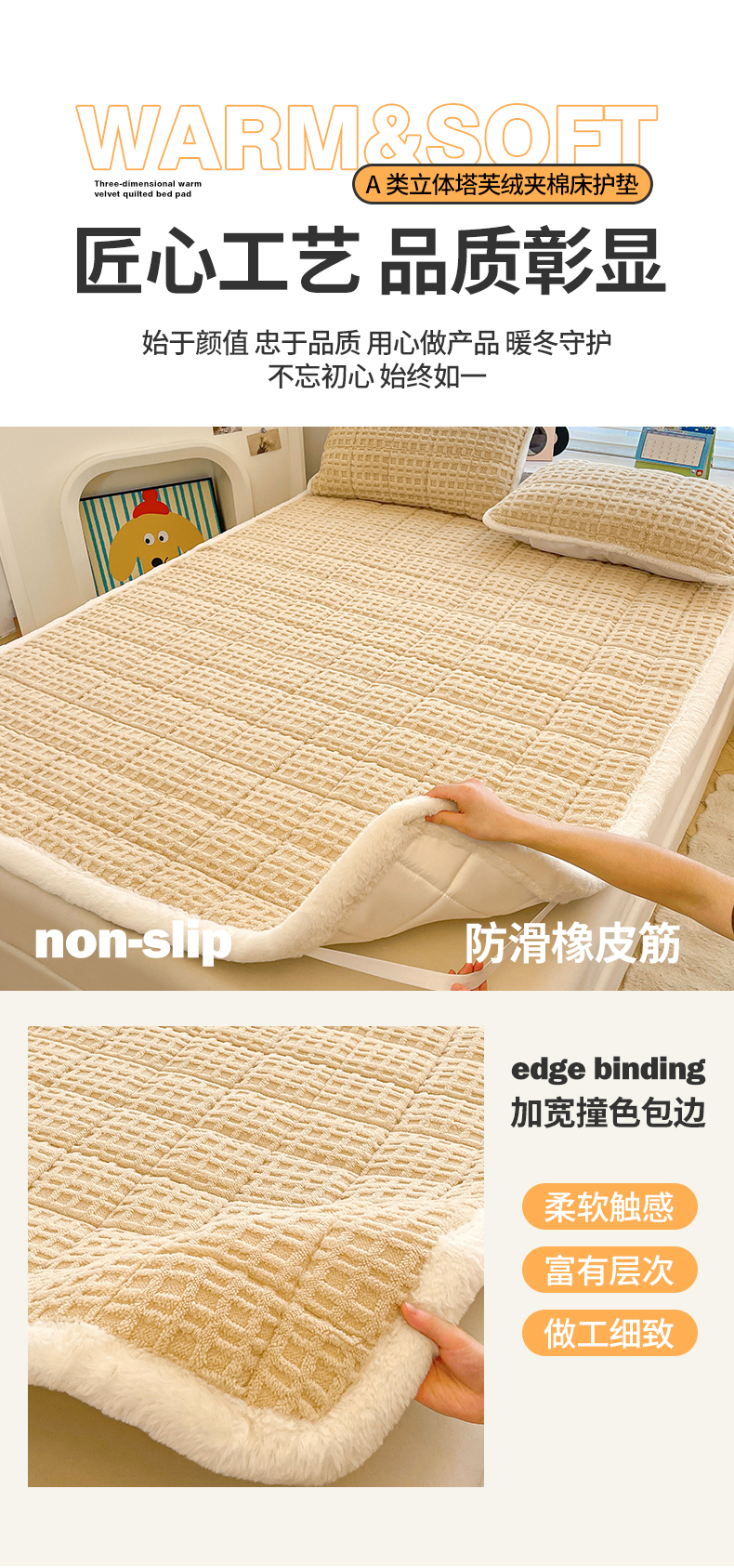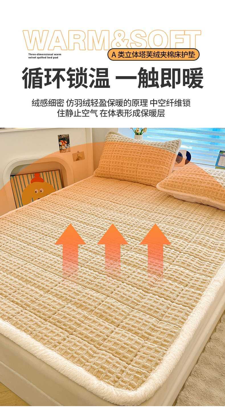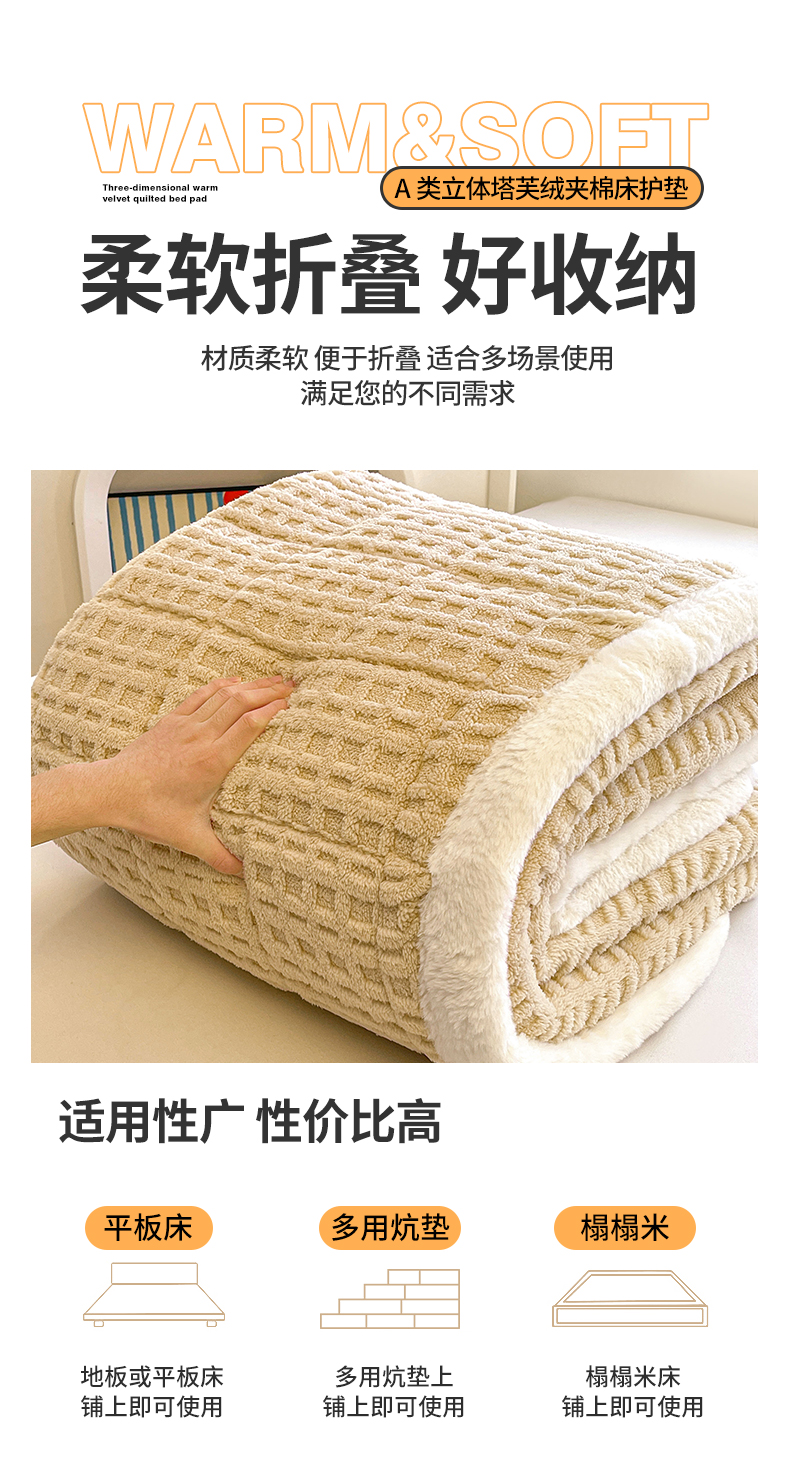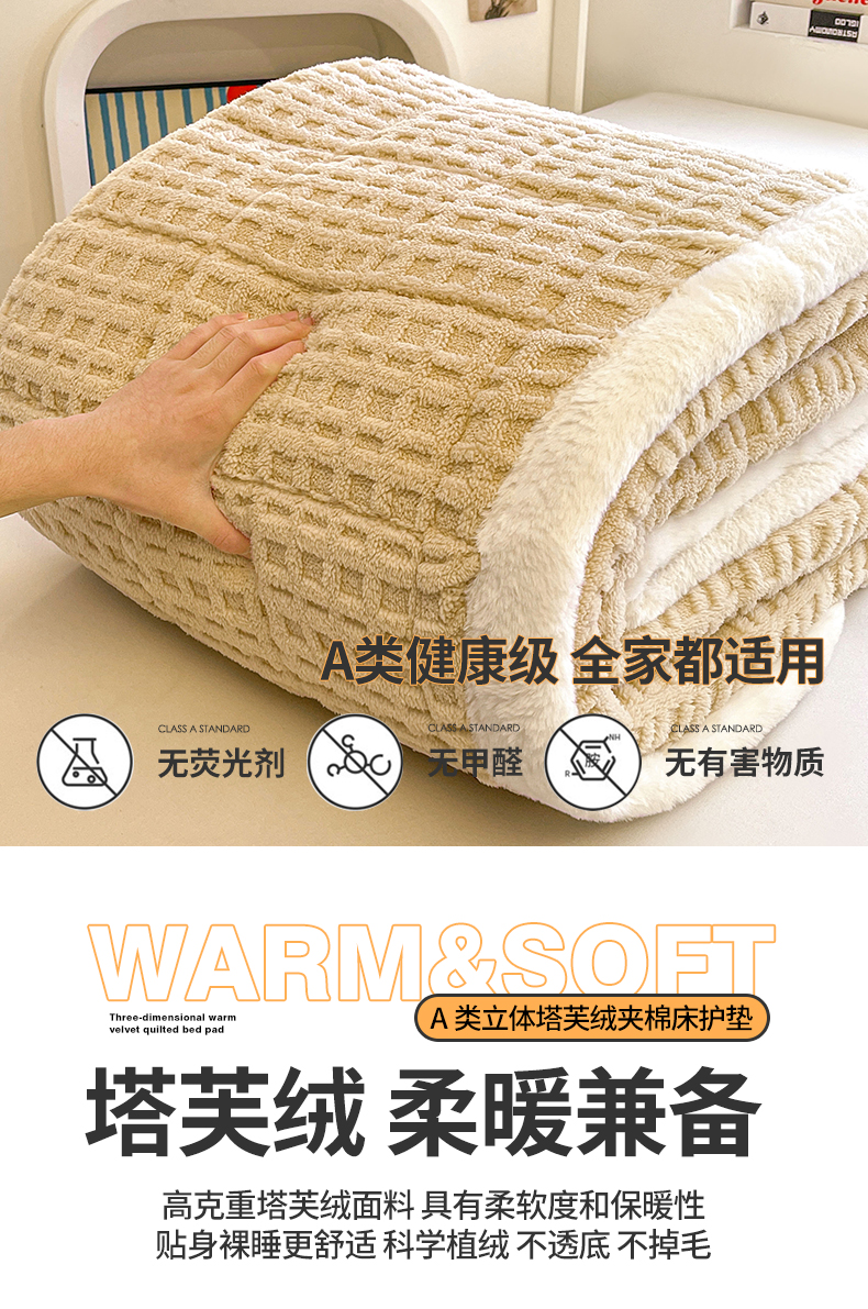 商品名称:予梦家纺 2025新款加厚塔芙绒床垫床褥床护垫(带卖点图和买家秀) 华夫格 卡其
