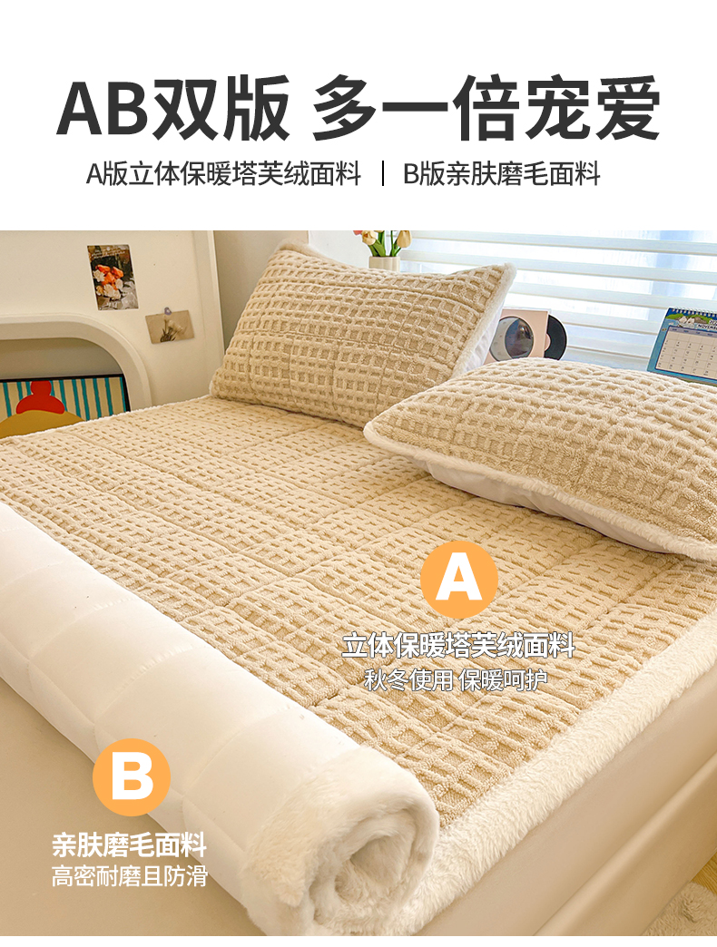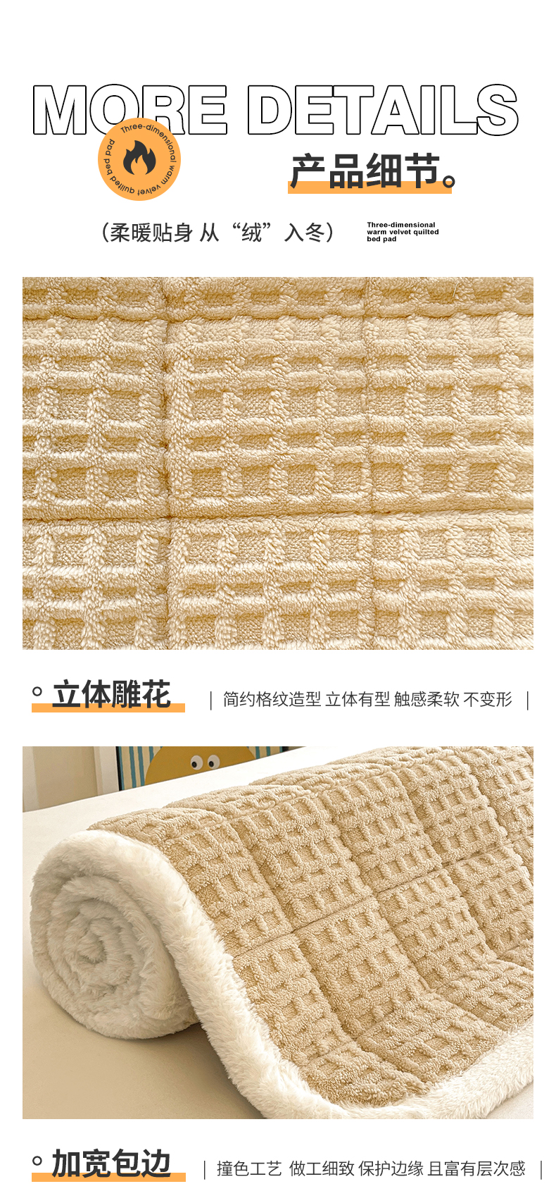 予梦家纺 2025新款加厚塔芙绒床垫床褥床护垫(带卖点图和买家秀) 华夫格 卡其