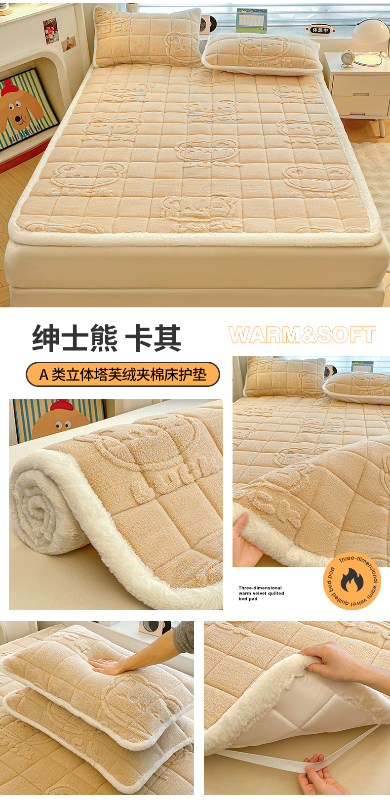 (总)予梦家纺 2025新款塔芙绒床护垫床垫保护套,萌萌熊 苍蓝,萌萌熊 果绿,萌萌熊 卡其,萌萌熊 星灰,星梦格 苍蓝,星梦格 果绿,星梦格 卡其,星梦格 星灰