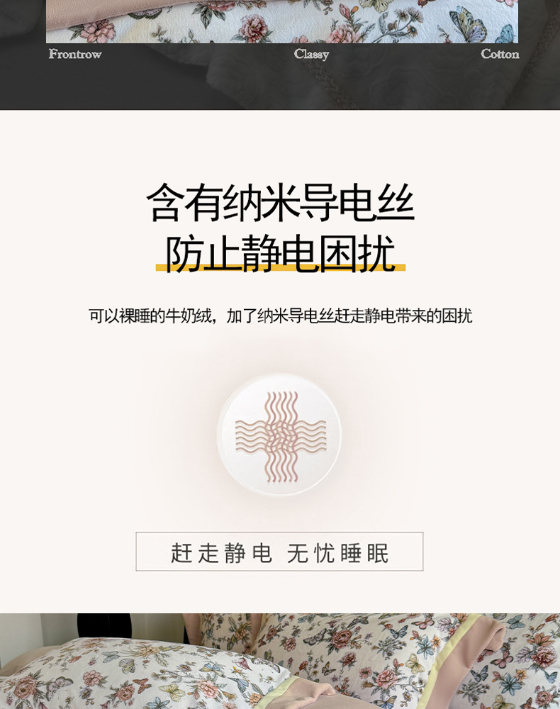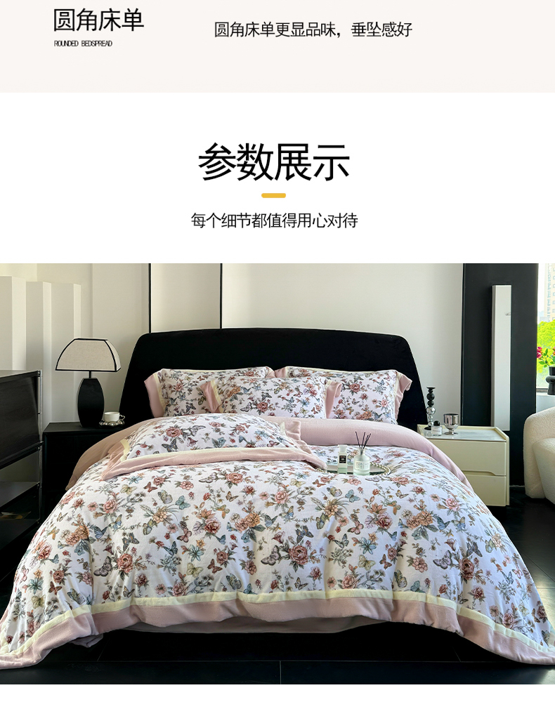 娇逸家居 2025新款高克重A类数码印花牛奶绒双拼边款四件套 采薇米
