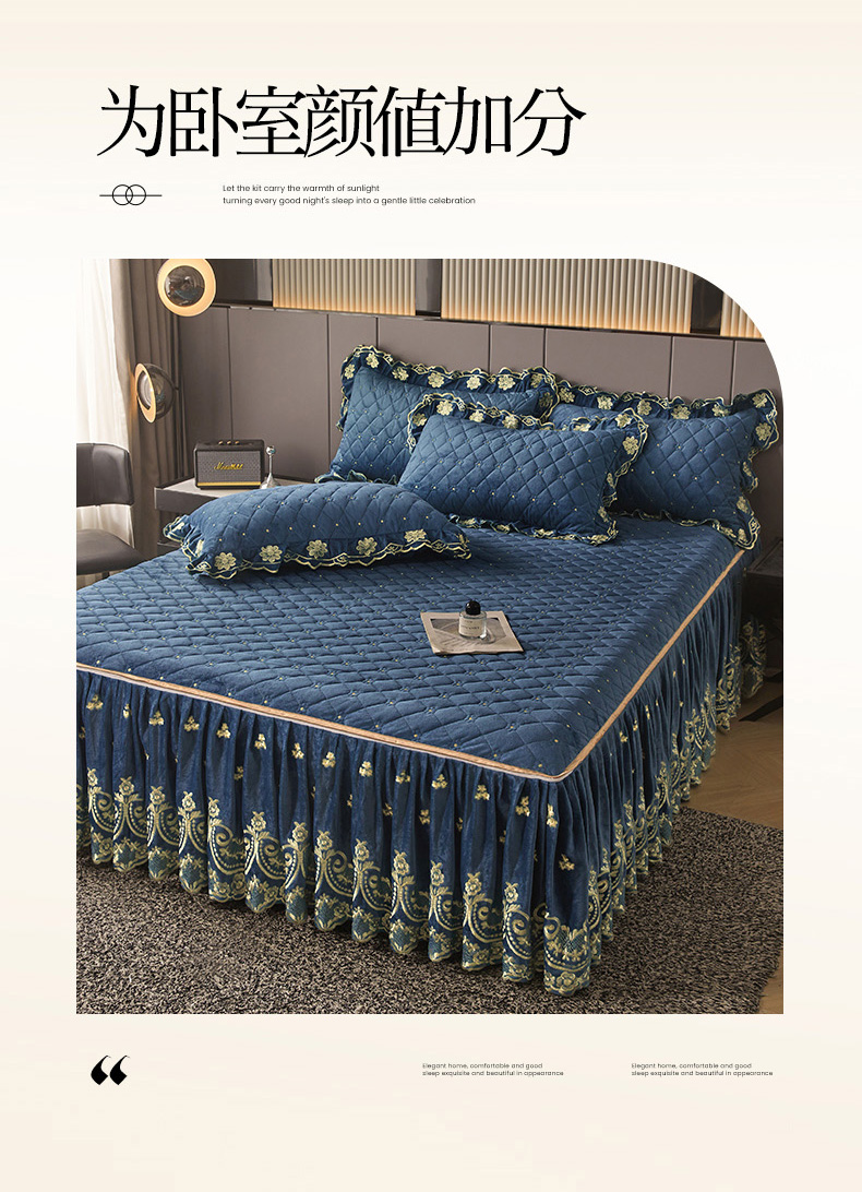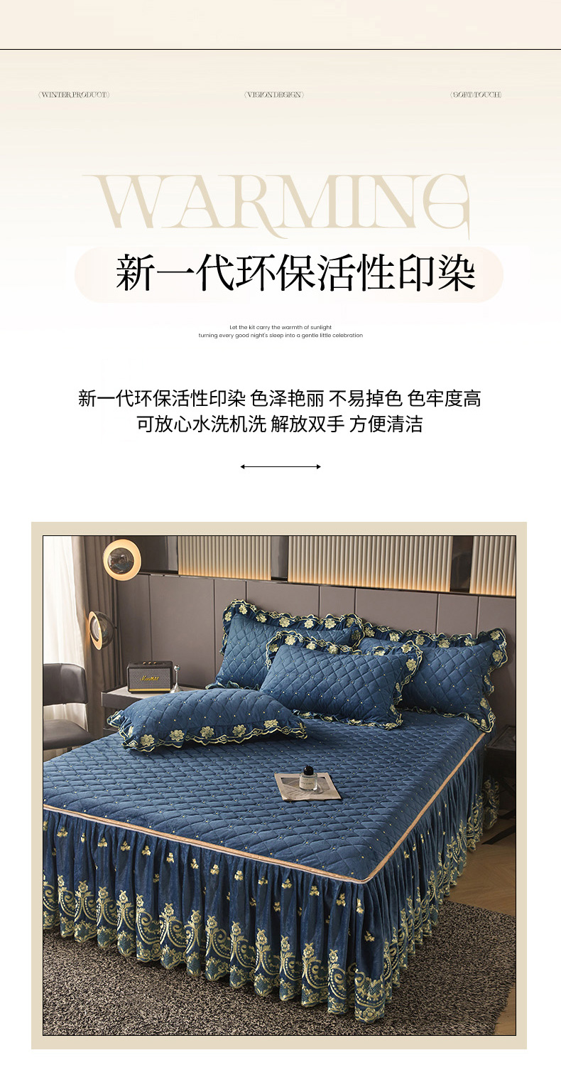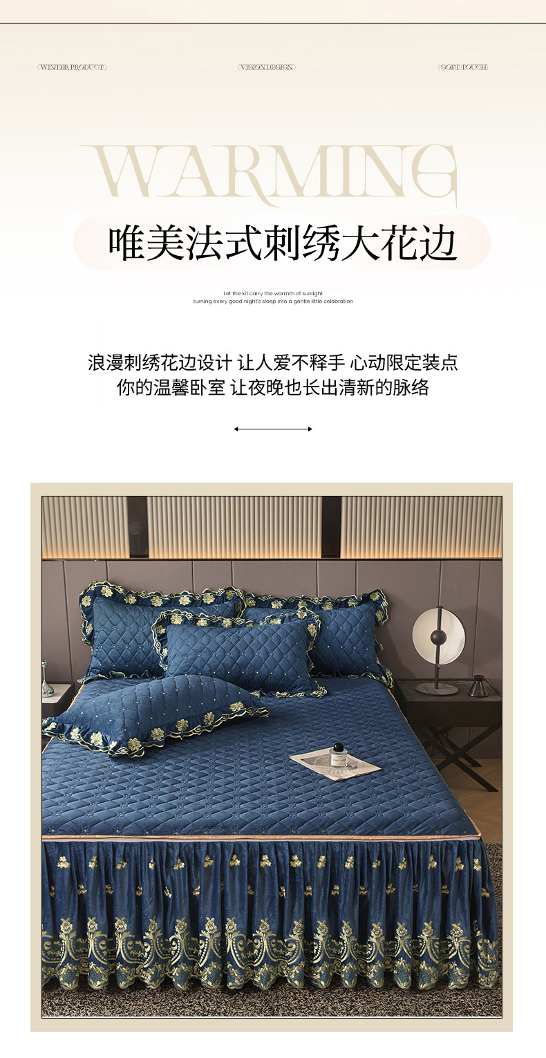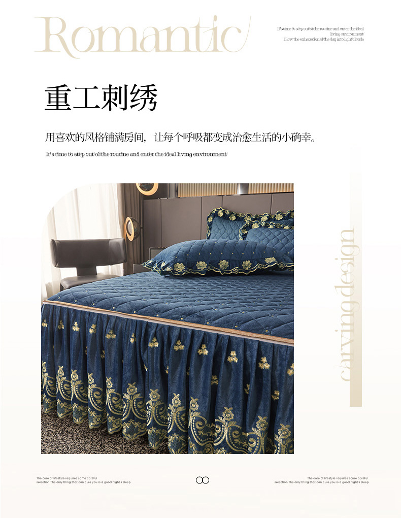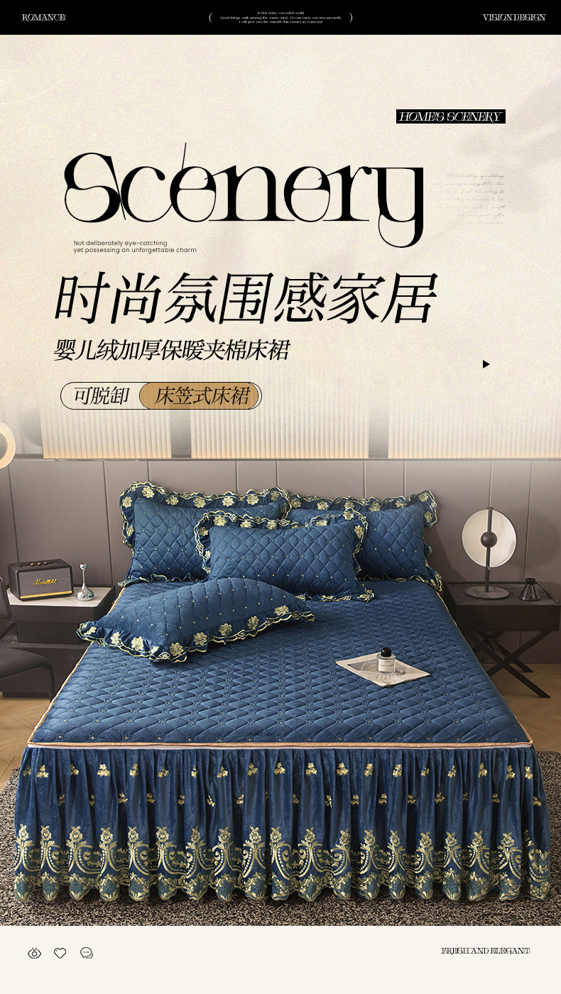 • 91家纺网 家纺一手货源 找家纺 罗艺轩 2025新款婴儿绒加厚保暖床裙式三件套-心语 心语-宝蓝
