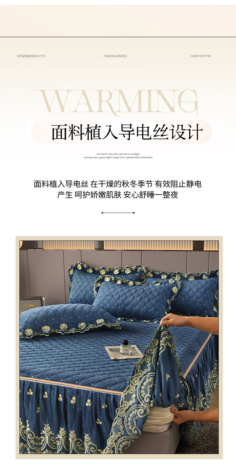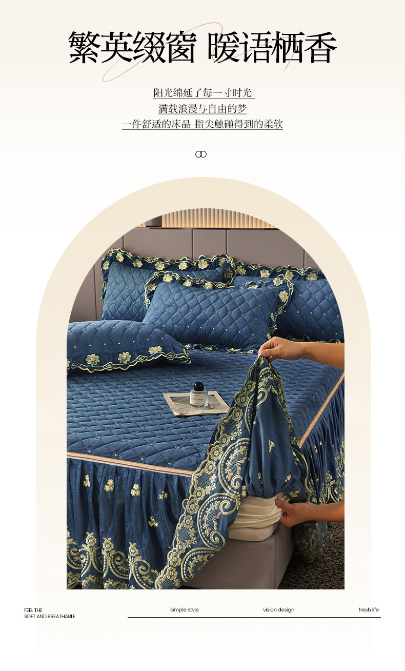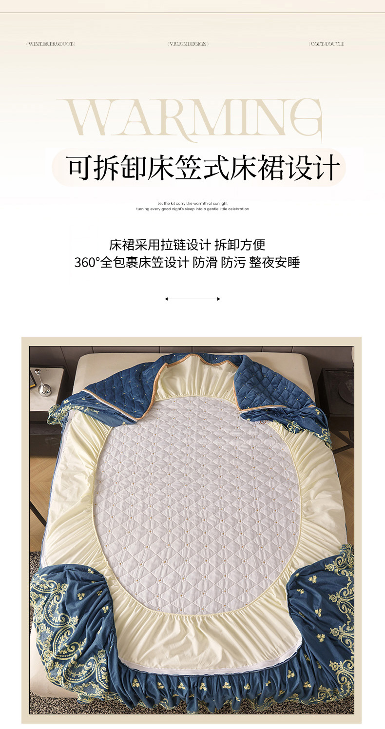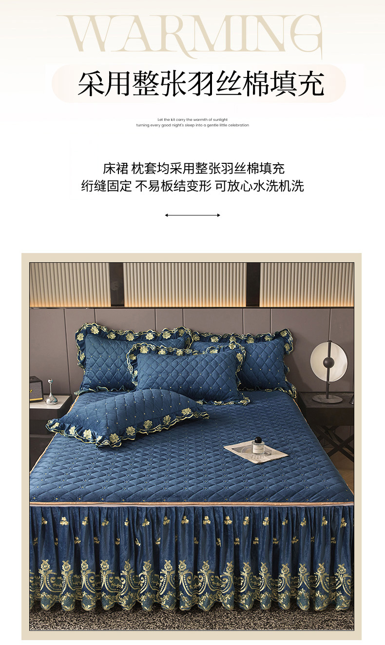 • 91家纺网 家纺一手货源 找家纺 罗艺轩 2025新款婴儿绒加厚保暖床裙式三件套-心语 心语-宝蓝