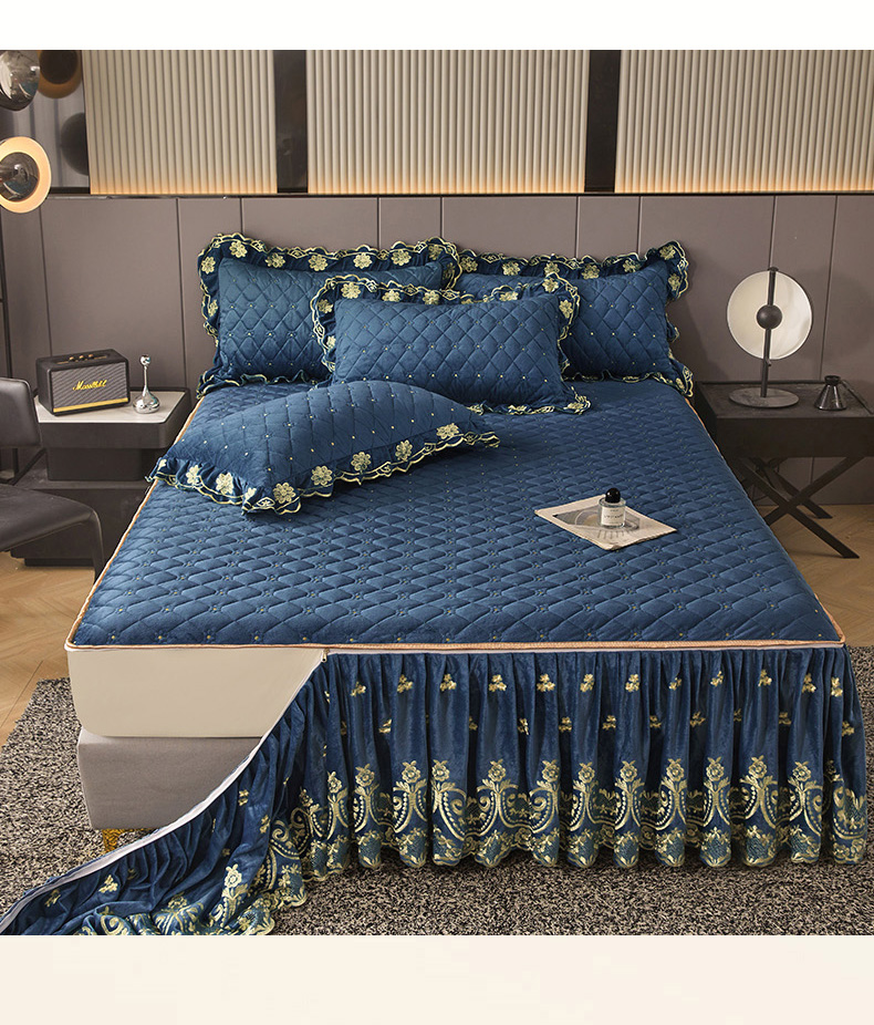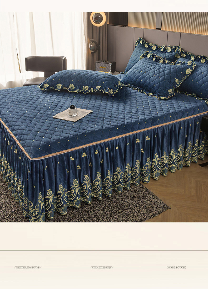 罗艺轩 2025新款婴儿绒加厚保暖床裙式三件套-心语 心语-宝蓝
