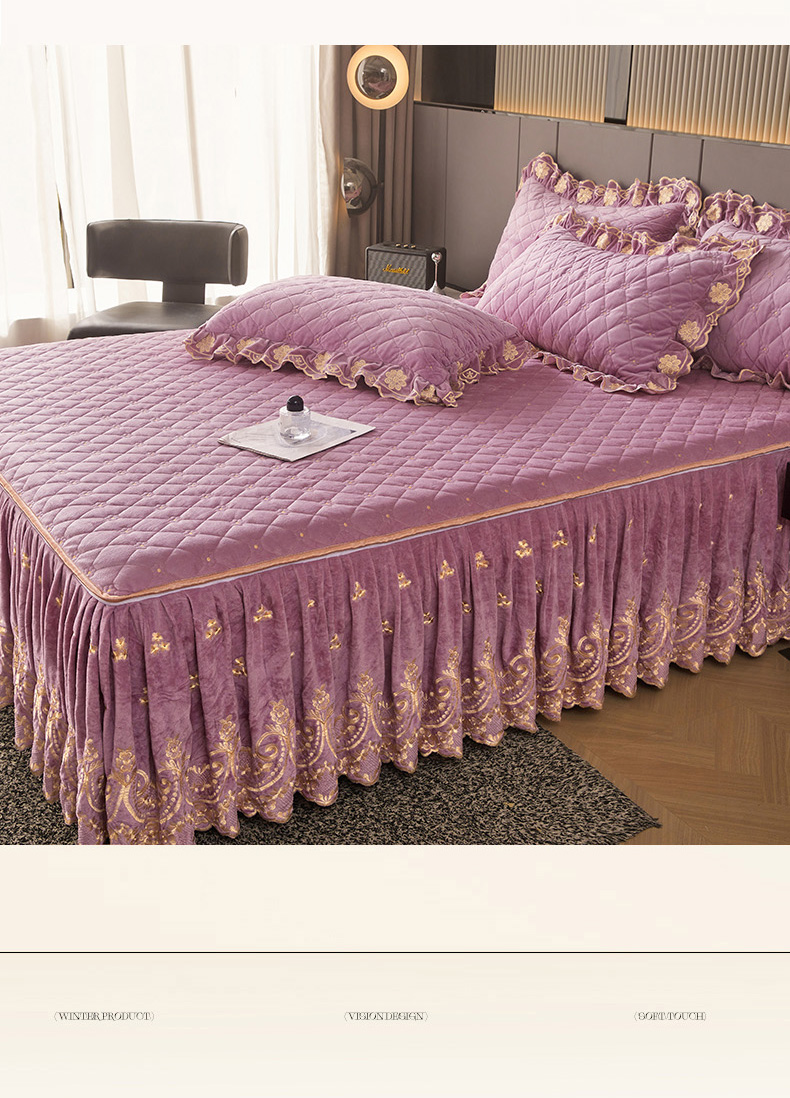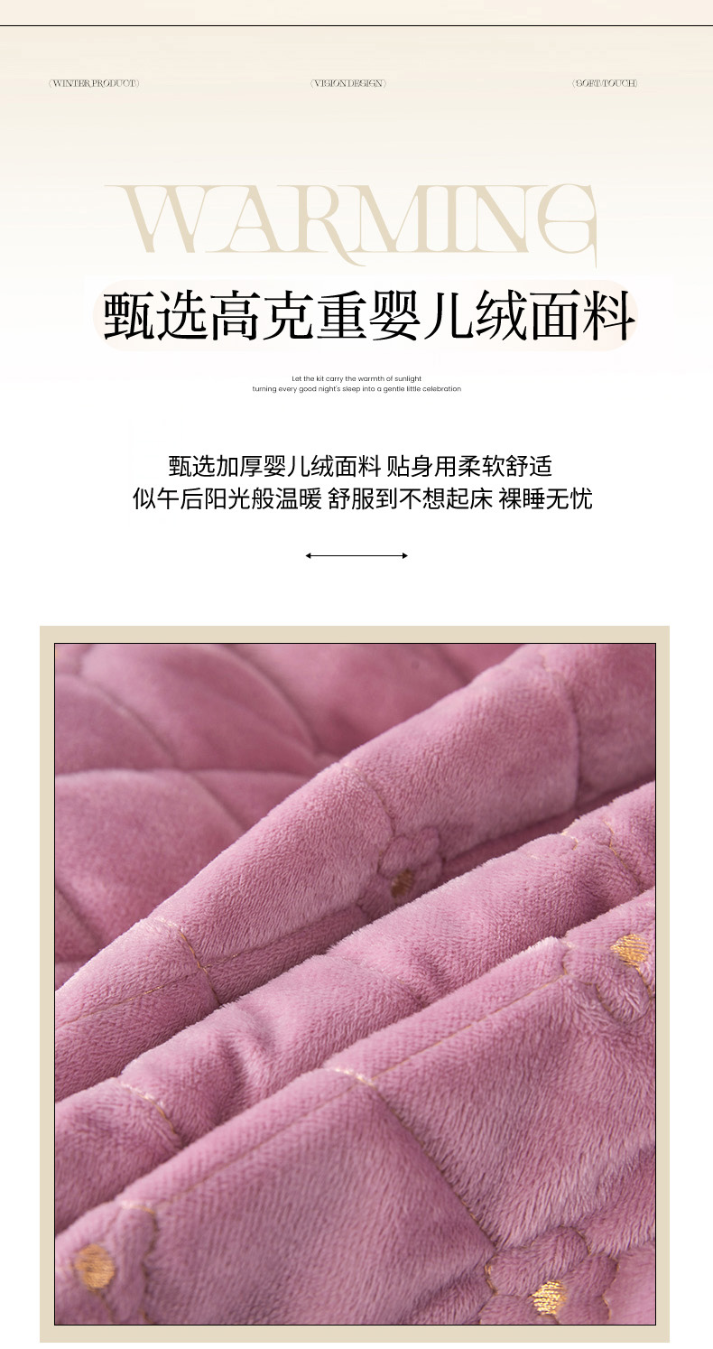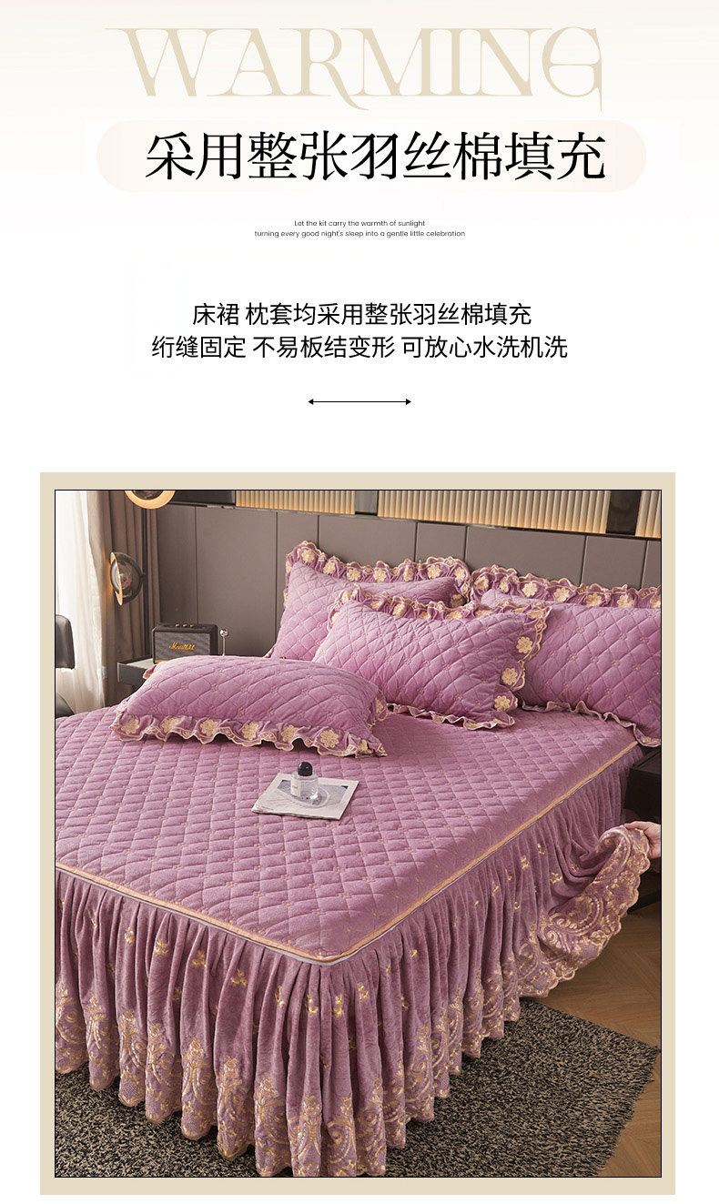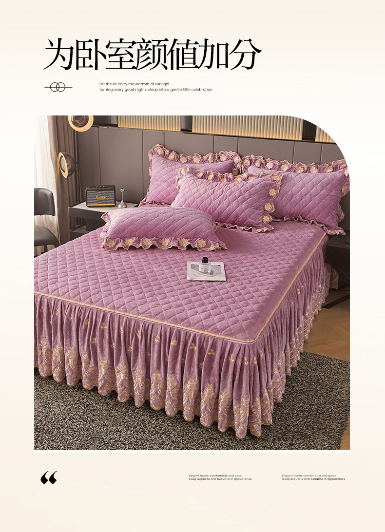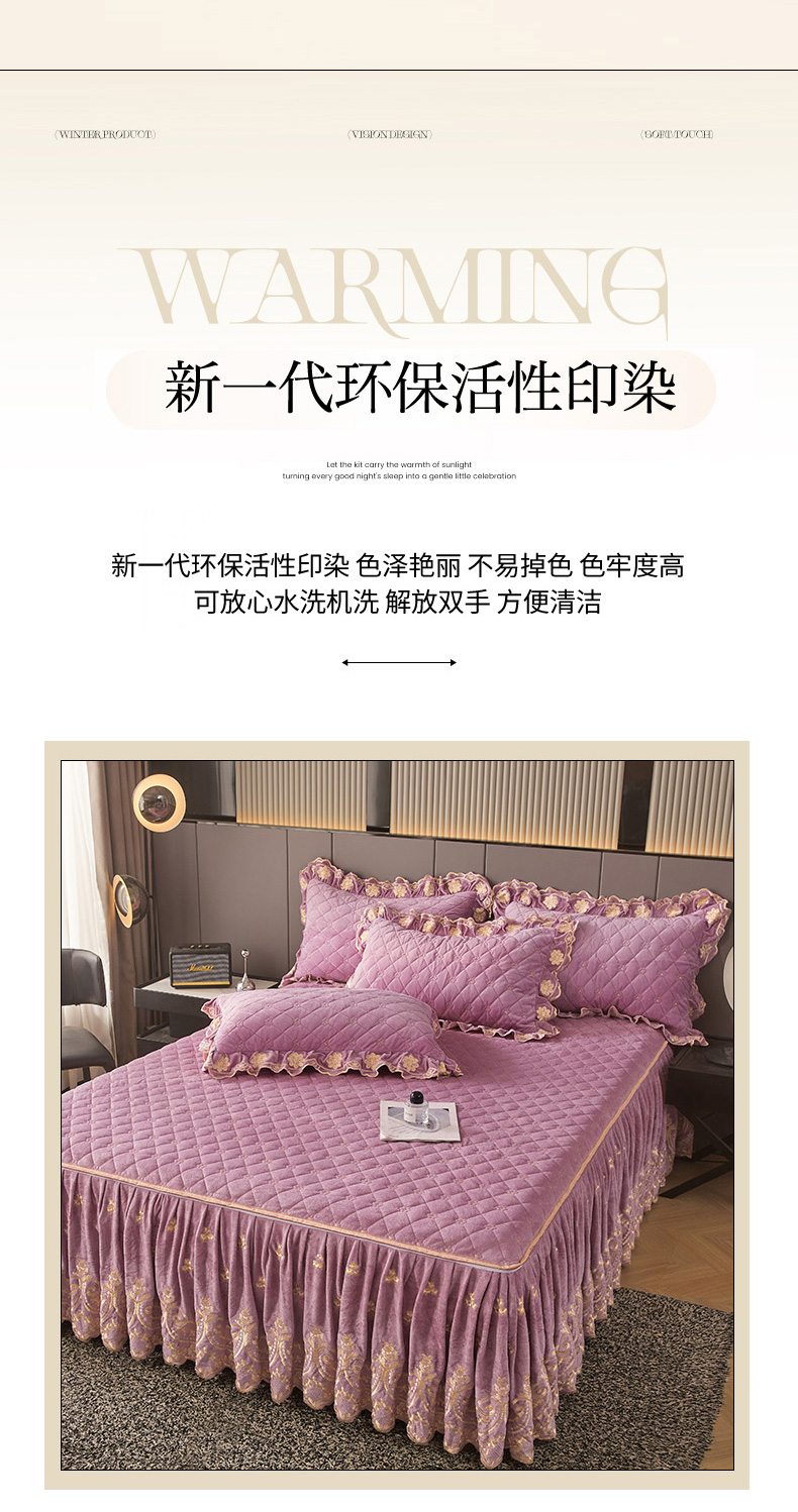 • 91家纺网 家纺一手货源 找家纺 罗艺轩 2025新款婴儿绒加厚保暖床裙式三件套-心语 心语-紫色