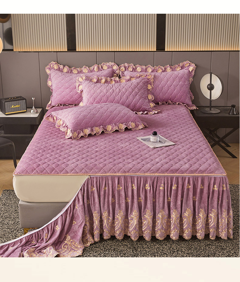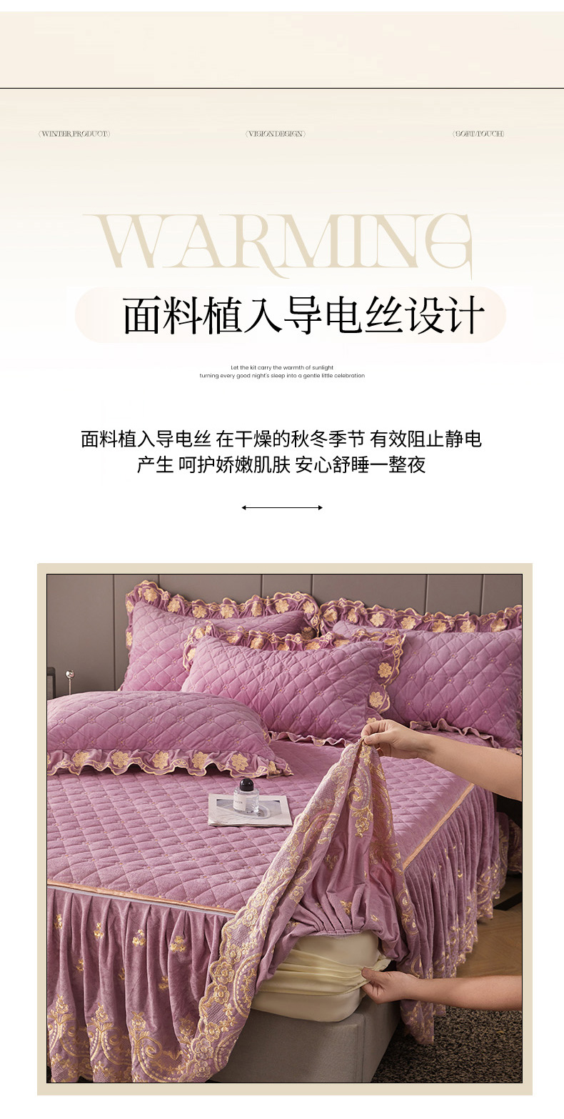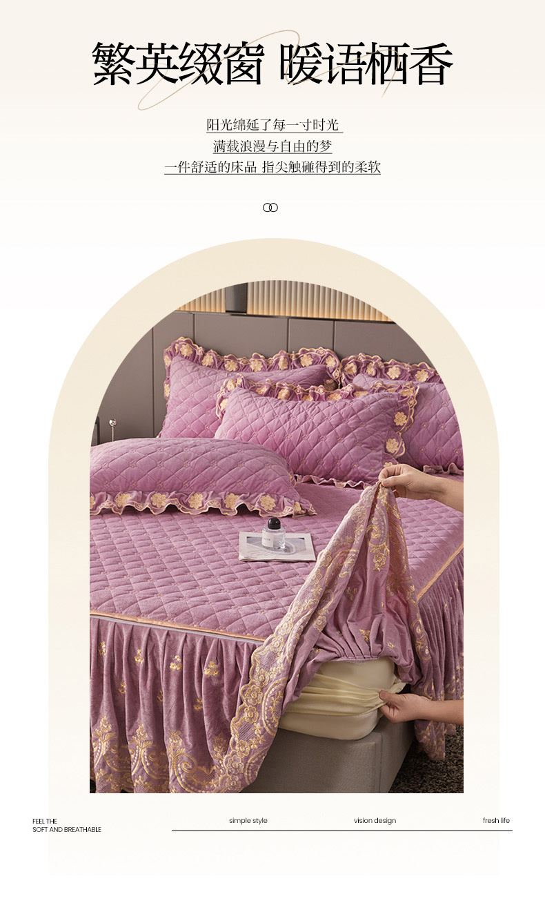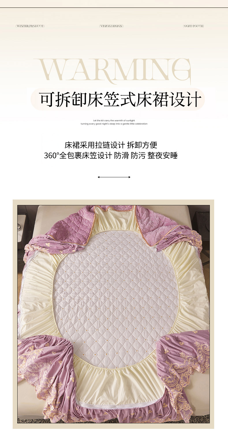 • 91家纺网 家纺一手货源 找家纺 罗艺轩 2025新款婴儿绒加厚保暖床裙式三件套-心语 心语-紫色