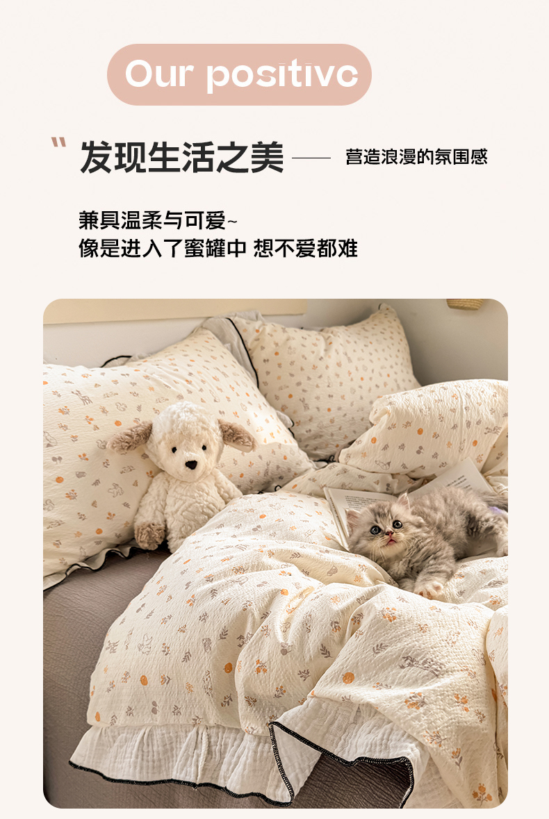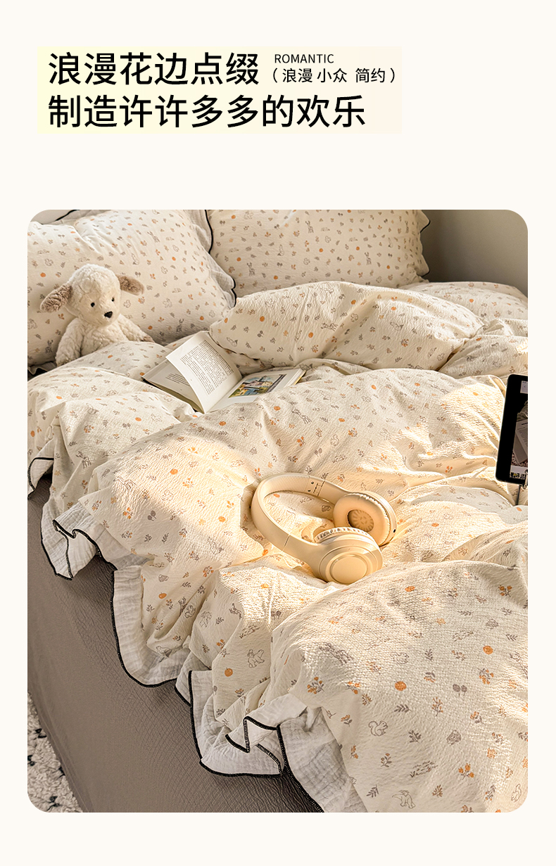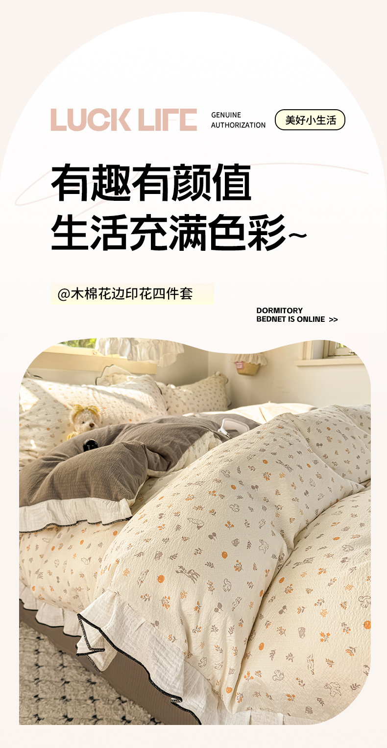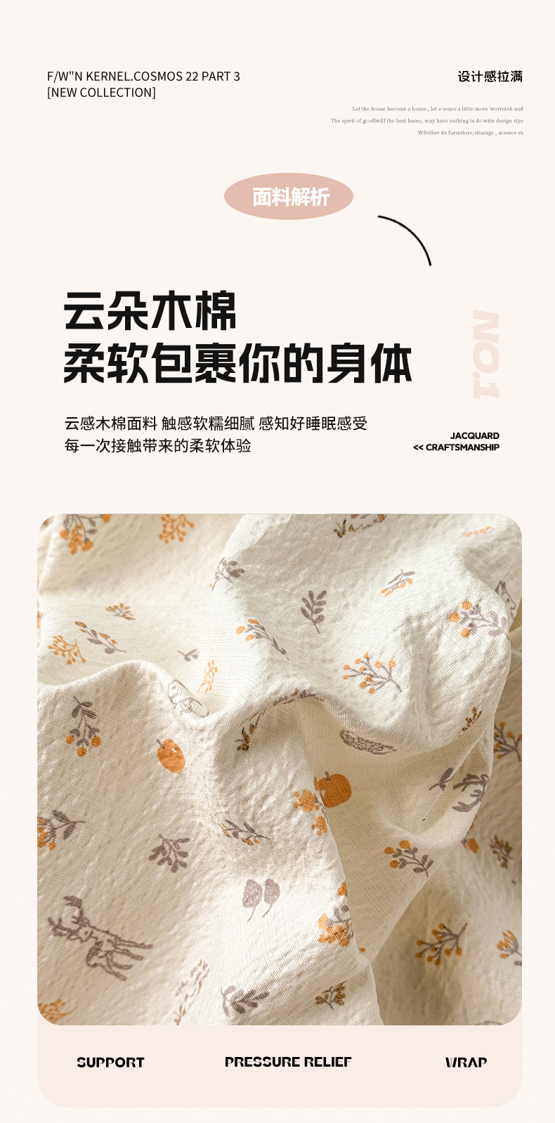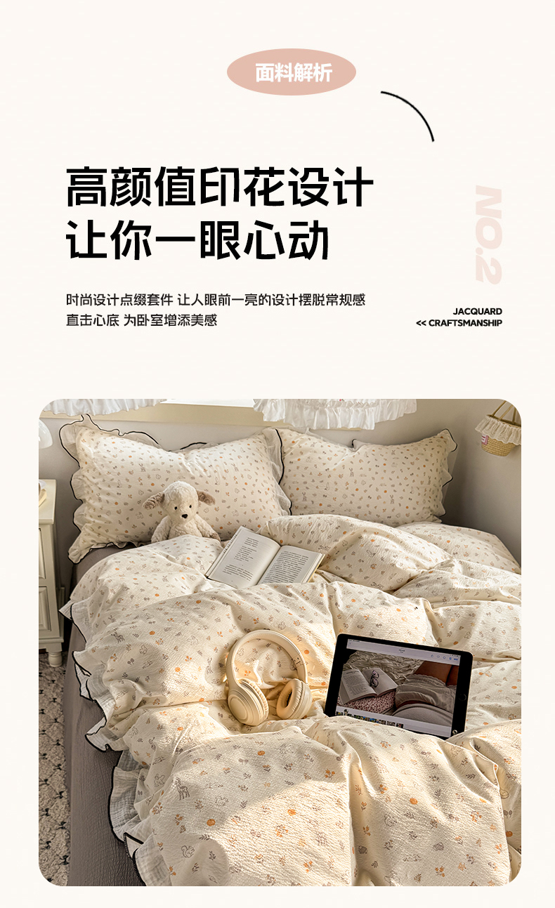 当前位置: 91家纺网 > 商品网购 > 床品套件 > 四件套 > 其它四件套 > 繁花家居 2025新款高弹线云感木棉多层纱花边超软四件套 森林公园