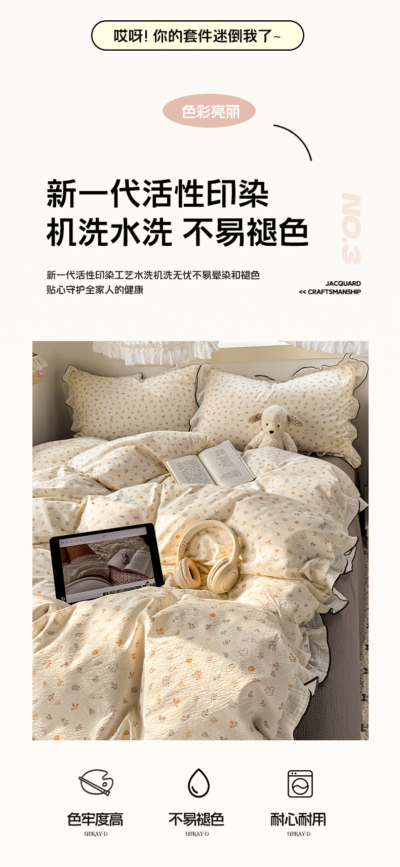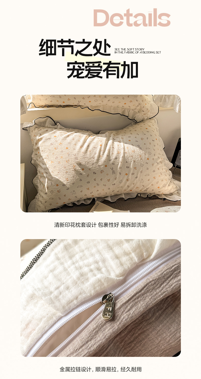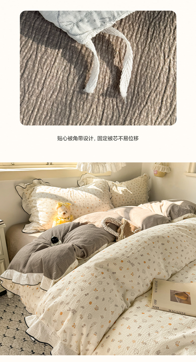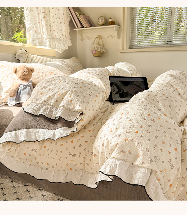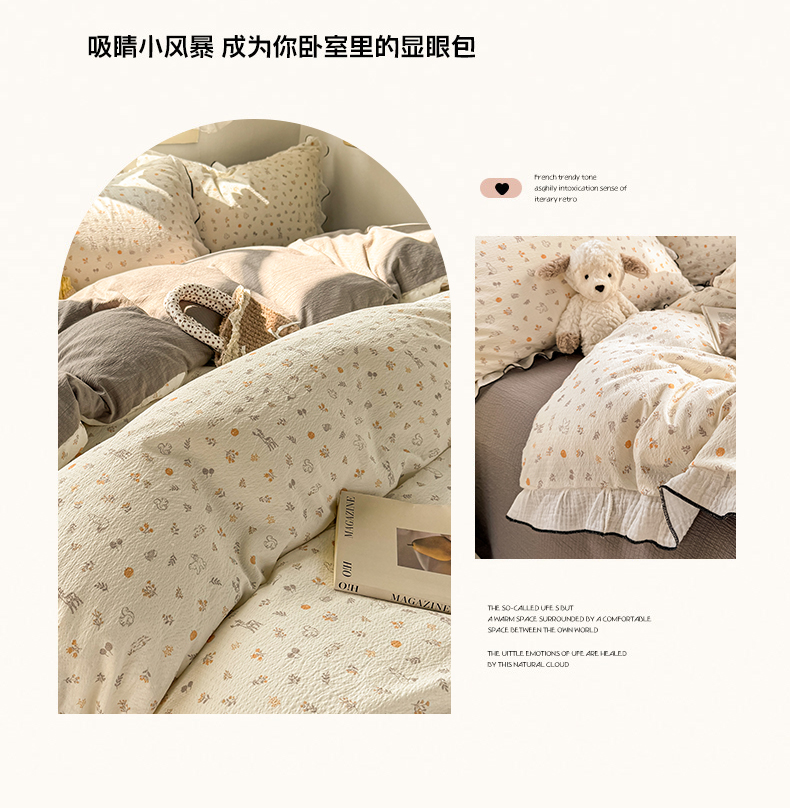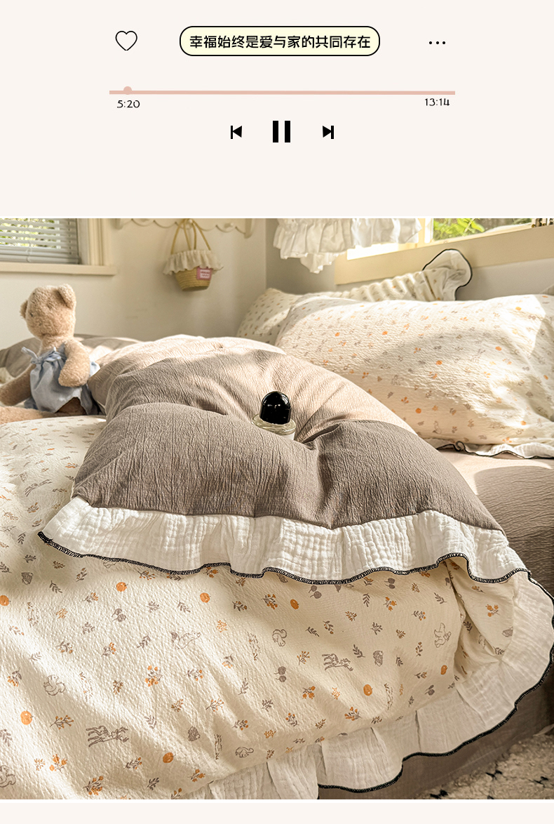 当前位置: 91家纺网 > 商品网购 > 床品套件 > 四件套 > 其它四件套 > 繁花家居 2025新款高弹线云感木棉多层纱花边超软四件套 森林公园