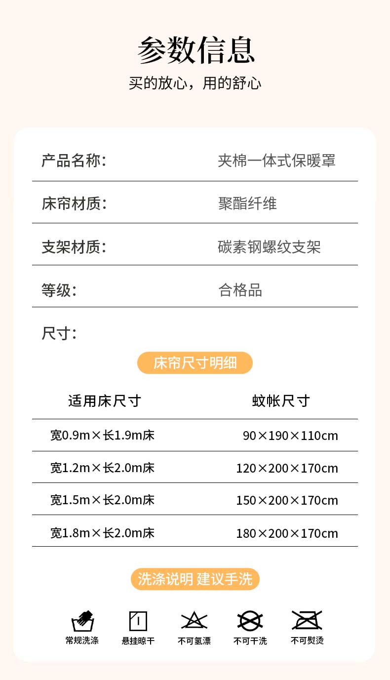 150*200【单蚊帐+夹棉床帘】含支架 | ¥190.00 |