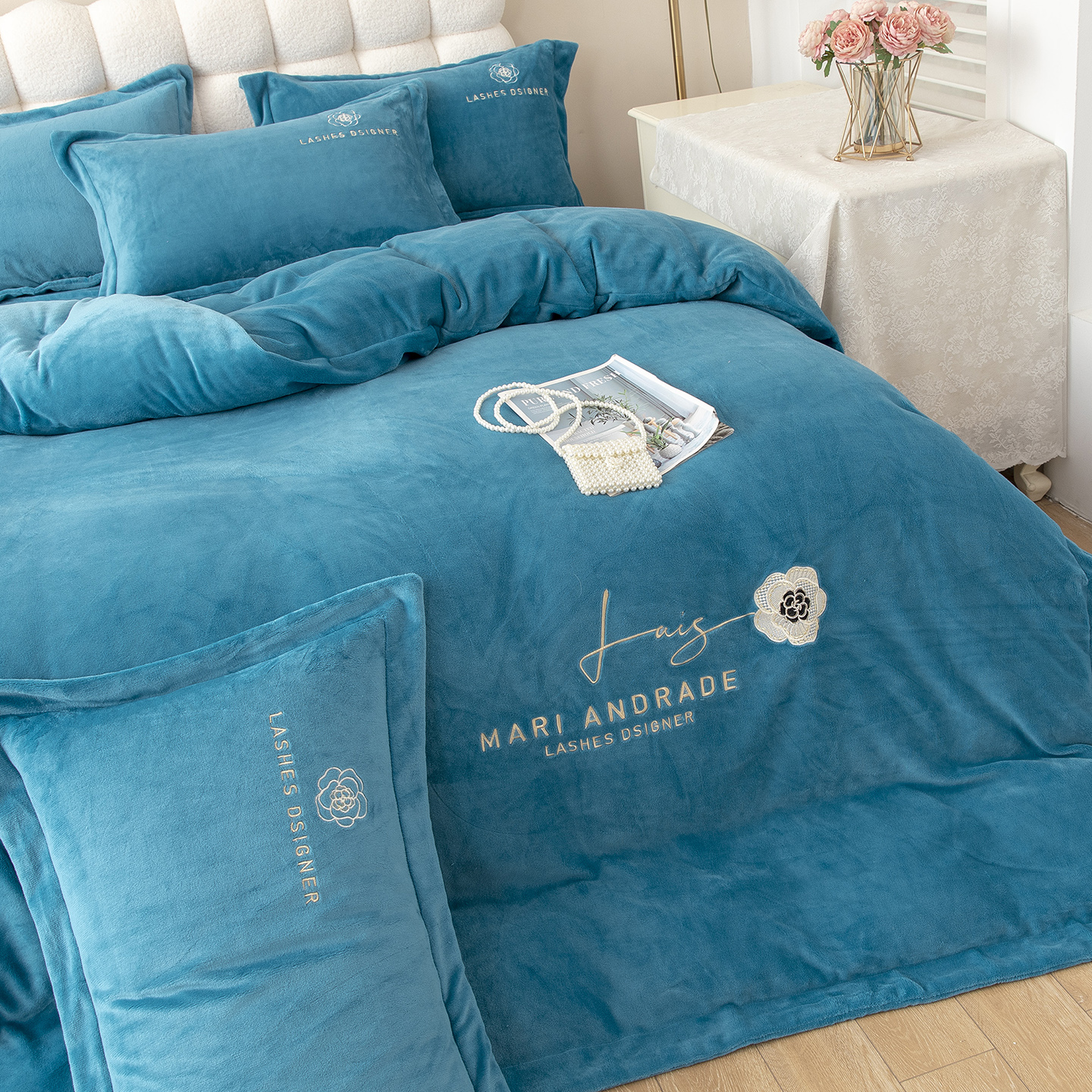 (总)贝尔 2025新款牛奶绒刺绣四件套-花语系列,花语-豆沙,花语-粉色,花语-高级灰,花语-蓝色,花语-浅绿,花语-玉色
