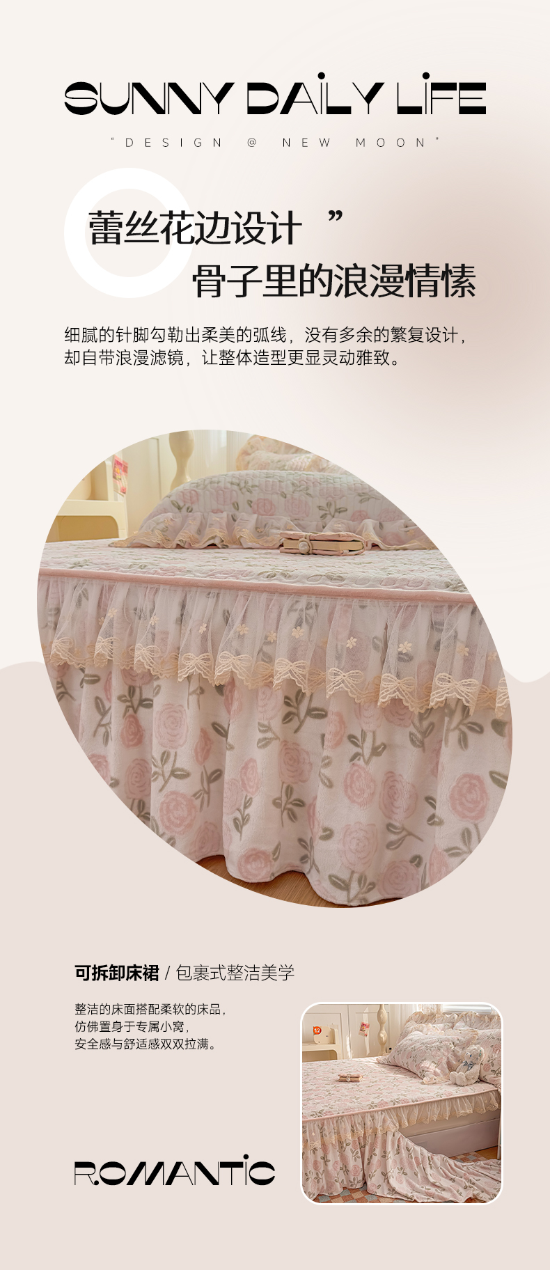 商品名称:(总)家之硕家纺 2025新款立体雕花可拆洗牛奶绒单床裙系列