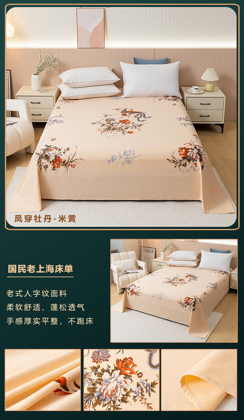 (总)居美良品 2025新款100%全棉纯棉国民老上海床单-牡丹飞燕,牡丹飞燕-淡玉,牡丹飞燕-米白,牡丹飞燕-抹茶绿,牡丹飞燕-浅粉,牡丹飞燕-天蓝,牡丹飞燕-紫色,组合图仅供展示不可下单