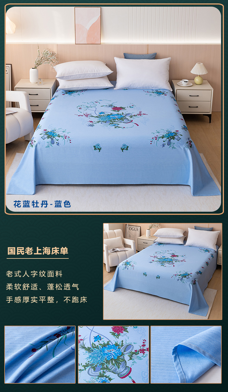(总)居美良品 2026新款100%全棉纯棉老式国民床单老上海海床单-牡丹绽放,牡丹绽放-玉色,牡丹绽放-粉色,牡丹绽放-蓝色,牡丹绽放-米黄,牡丹绽放-浅绿,组合图仅供展示不可下单