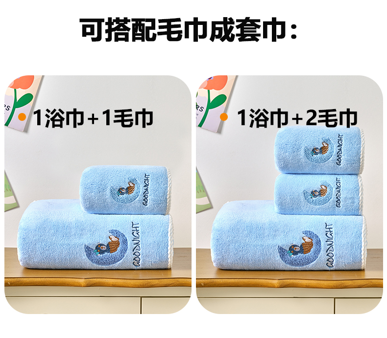 当前位置: 91家纺网 > 商品网购 > 居家日用 > 毛巾/浴巾/浴袍 > 浴巾 > 棠薇家纺 2025新款强吸水浴巾超细纤维速干浴巾加厚浴巾套巾擦身-月亮熊 月亮熊兰 毛巾75*35浴巾140*701浴巾+2毛巾